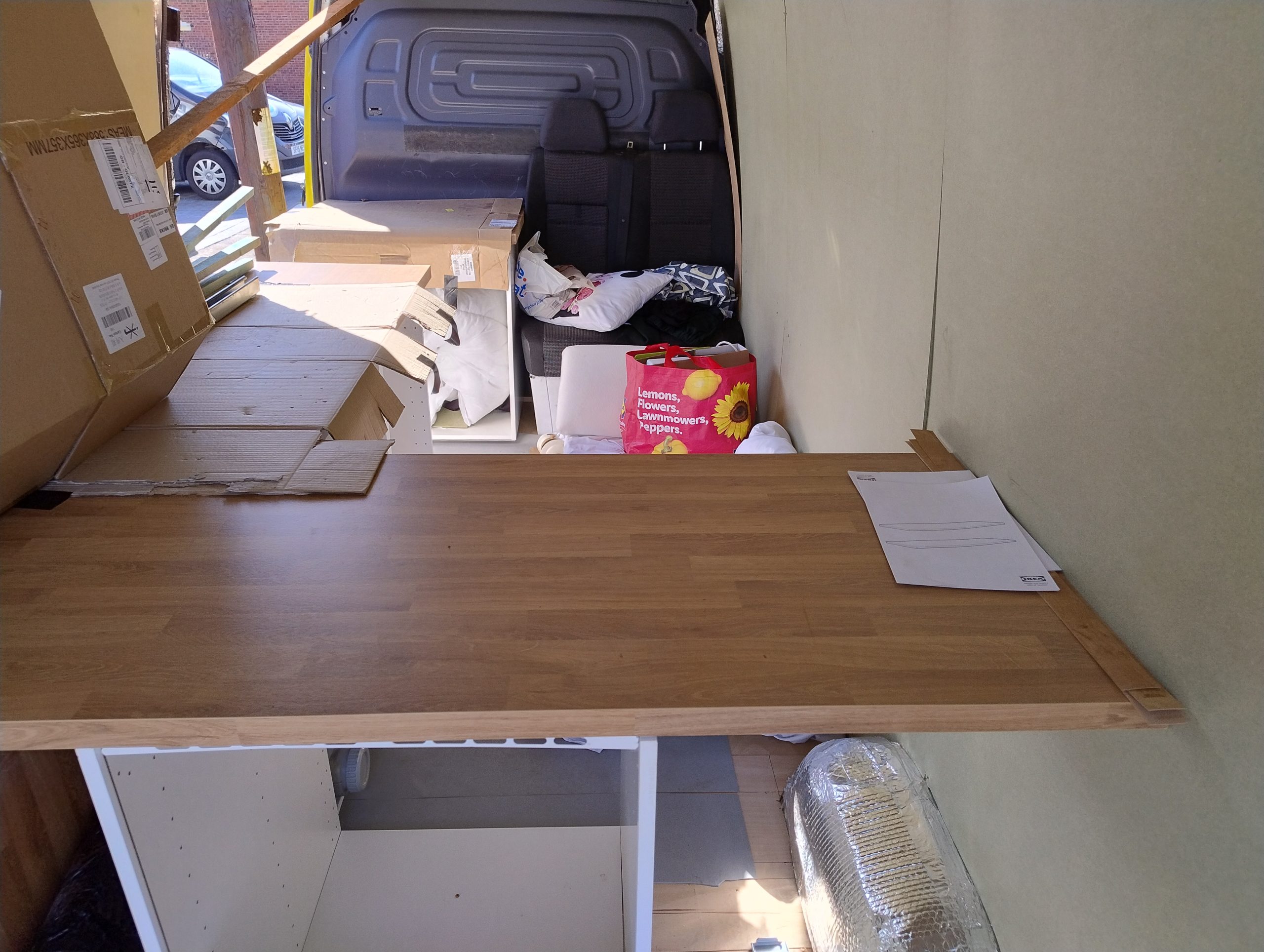 As are some sheets of timber and batons for creation of van interior.