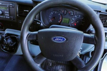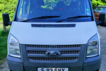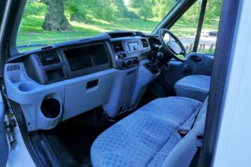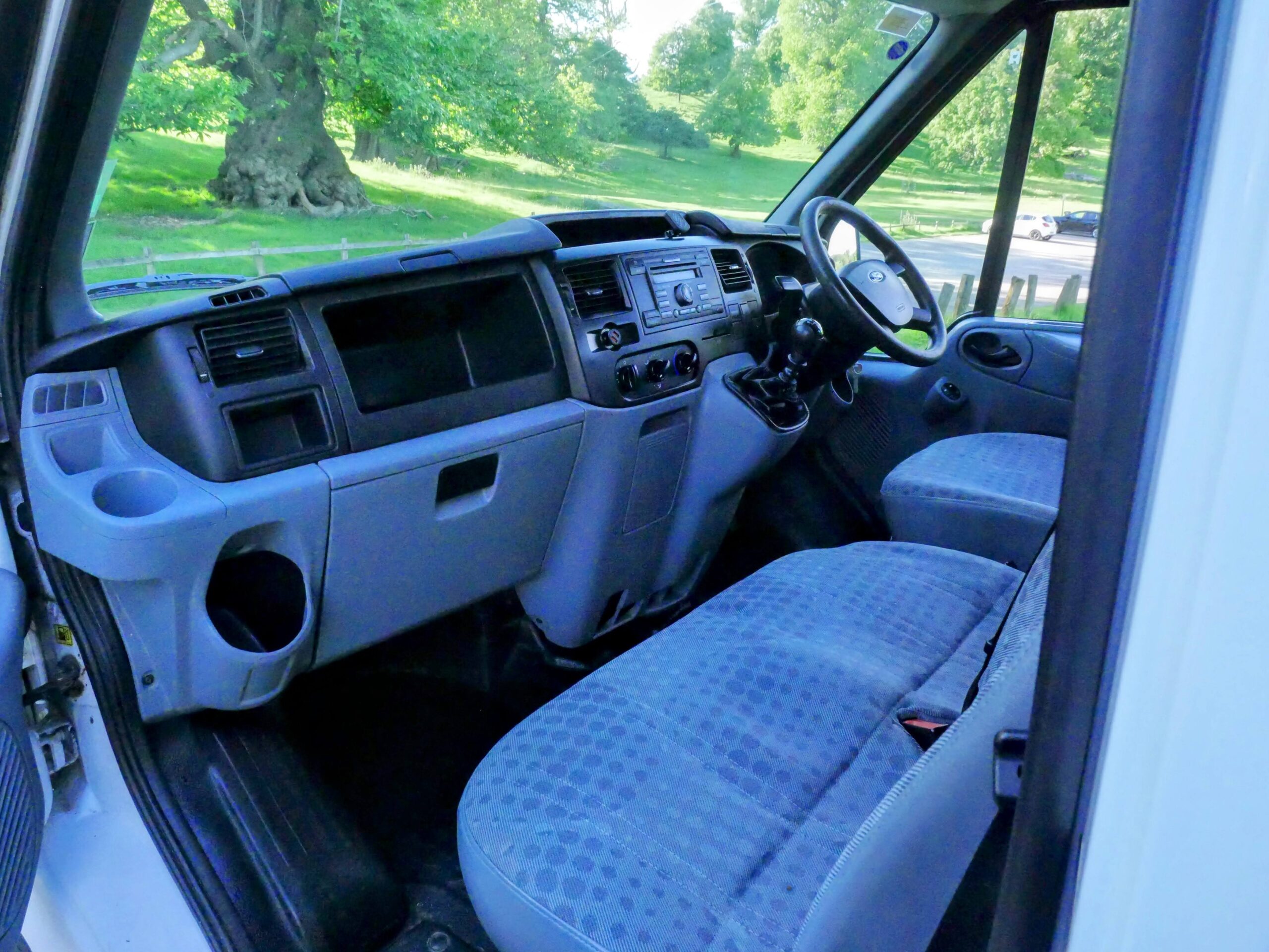 Exterior – age related marks and a few spots of surface rust on the body contingent with Transits of this age. The driver side front wheel arch has a dent and scrape damage where a reversing fire engine accidentally scraped past.