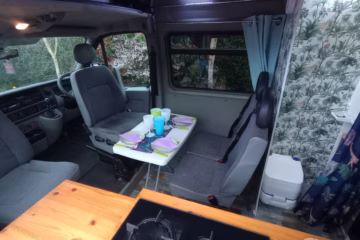 As Mo was previously a minibus there are lots of windows, which are tinted for Privacy. Black out blinds are fitted throughout for night time.