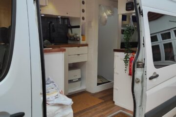 Included in the van is a full size shower with 10L hot water available as well as a large 105 Litre water tank, Strong pump enables warm showers if used sparingly can get two showers out of a single tank, Shower area doubles as a toilet storage area, the kitchen has a Large modern sink also connected to the hot water tank.