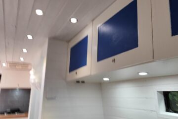 There is a large 220AH Dual battery setup powered by a 165 Solar panel, as well as a split charge relay, the van can also be powered by a shore power hookup allowing you to stay powered during long getaways.the van has a 3000W Inverter enabling the use of 240V devices throughout the Van and has various 3 pin plug outlets throughout also generous amounts of 12V Outlets throughout the Van for low power devices. Multi zone lighting layout individually controlled via switches included under cabinet lighting.