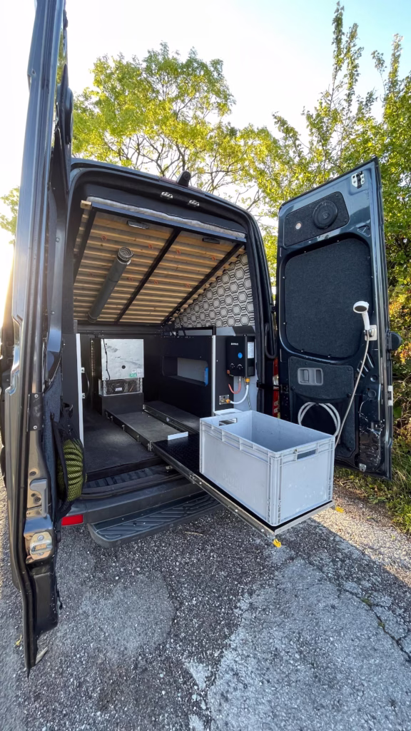 There is also an external 240v power outlet which I predominantly use for jetwashing muddy bikes before they’re allowed back in the van!
