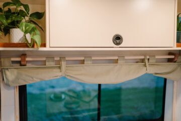 The van is fully equipped for anything you can throw at it, rain or shine: it’s fully insulated, sound deadened, and has a 4kw Truma heater and boiler, ensuring you’ve got a cosy home and a hot shower to return to. Perry is just as at home off the beaten trail as she is at a campsite, with a full off-grid electrical system, a 20L underslung LPG tank, 70L underslung fresh water tank and 50L underslung grey water tank.