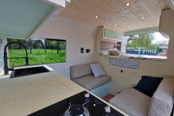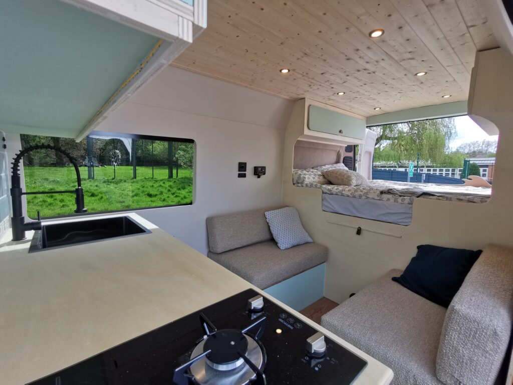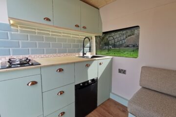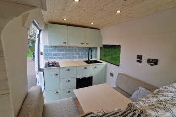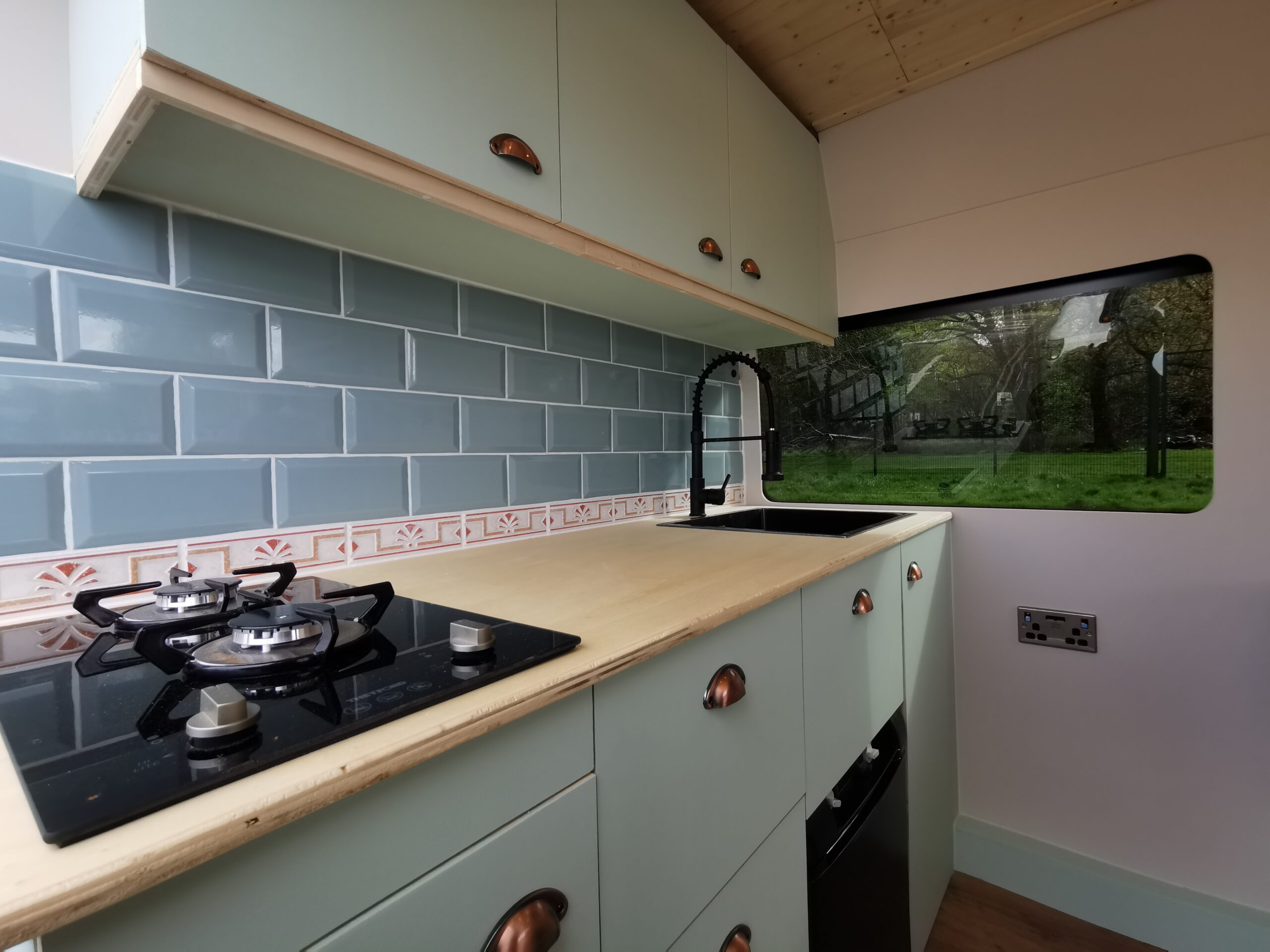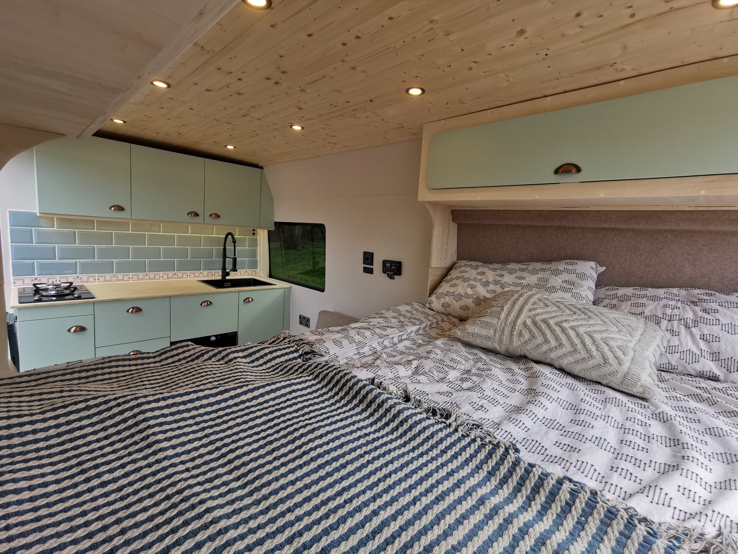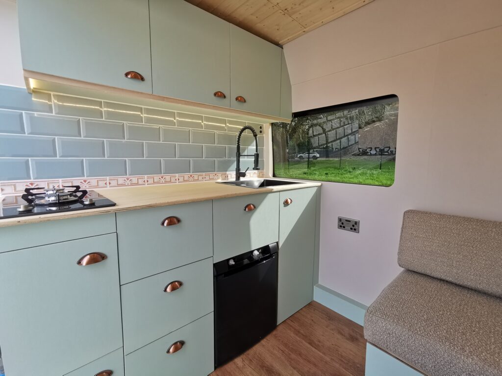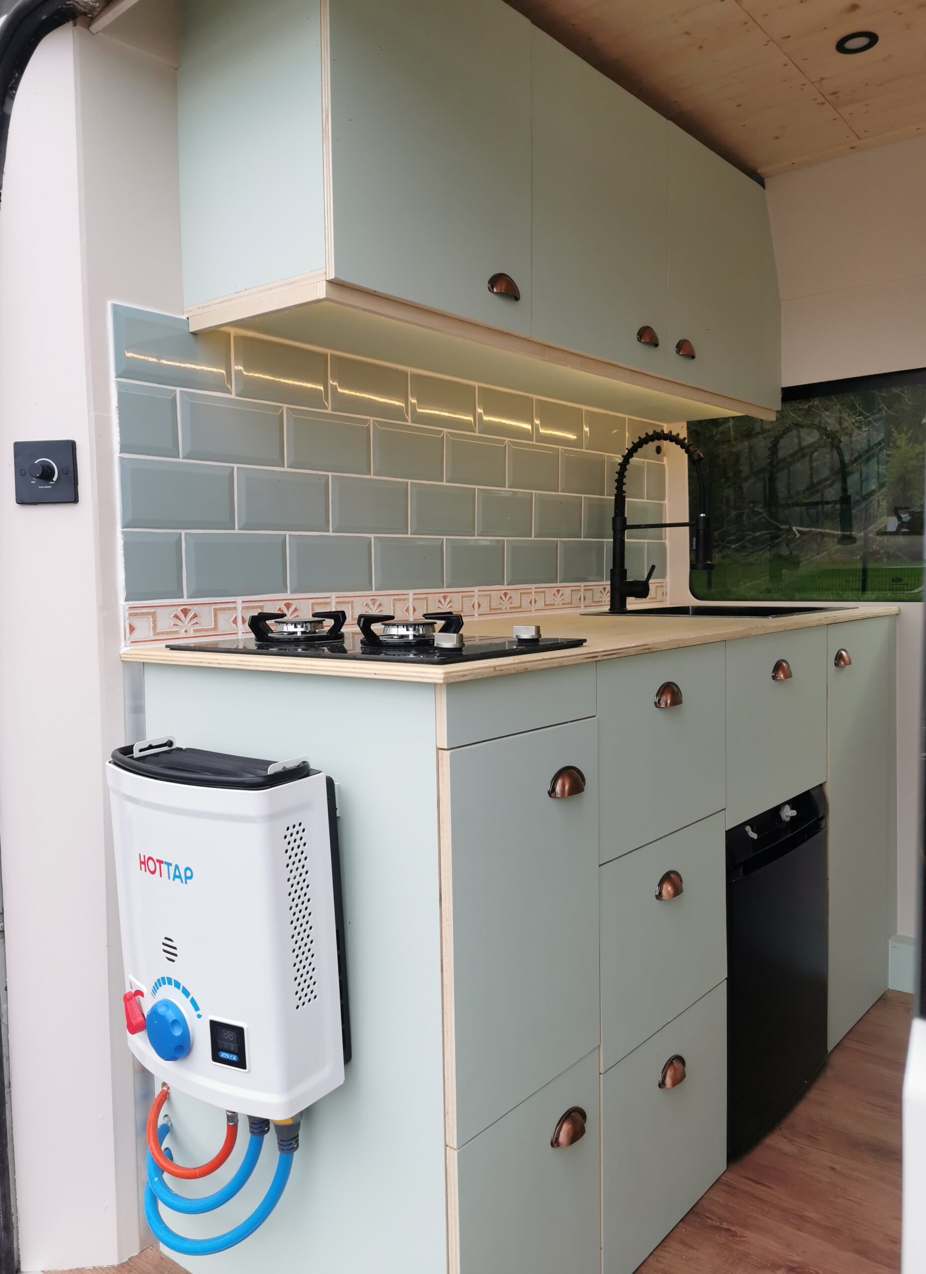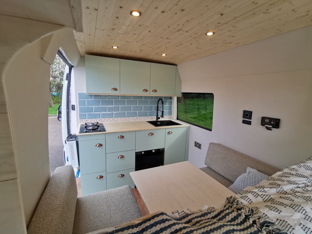 Everything is brand new and ready to go! This van features a stylish, tiled kitchen with top of the range fittings. The Joolca hot tap provides instant hot water inside and outside for washing a dog, a wash at the beach or wherever your adventures take you. The van has been converted with calm tones, relaxation, adventure and self sufficiency in mind. If youβre off grid or plugged in at a campsite, you have all the space and comfort needed for any adventure anytime.