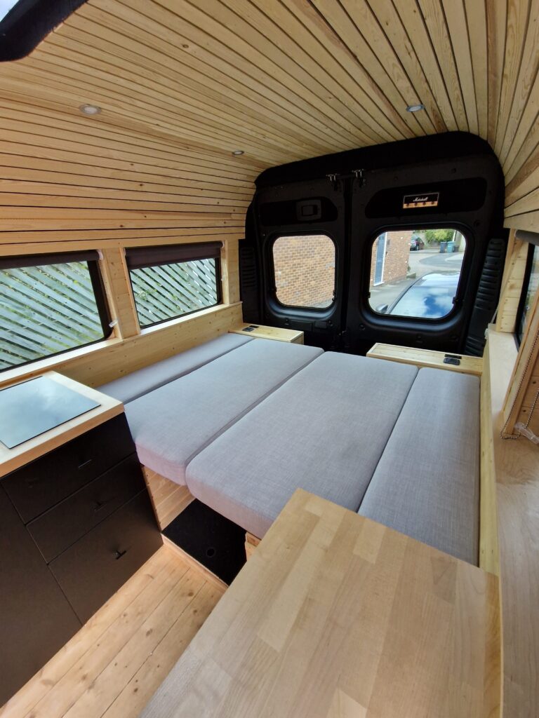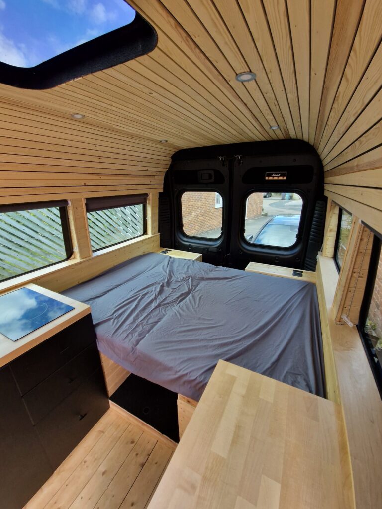 A lovingly converted campervan. Completed by myself and my father who is a joiner by trade. Plumbing was all completed by a professional plumber. Selling with a very heavy heart due to the escalating costs of a house renovation project and a break up. It’s not been done up to sell, it’s been done up to keep. No expense spared on the spec or the materials. Only used a handful of times since the completion to keep it in A1 condition. Bed dimensions are 135cm X 180cm. Internal head height is 185cm.