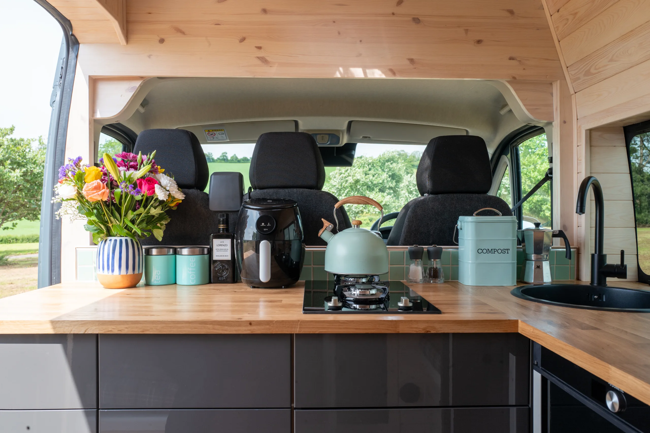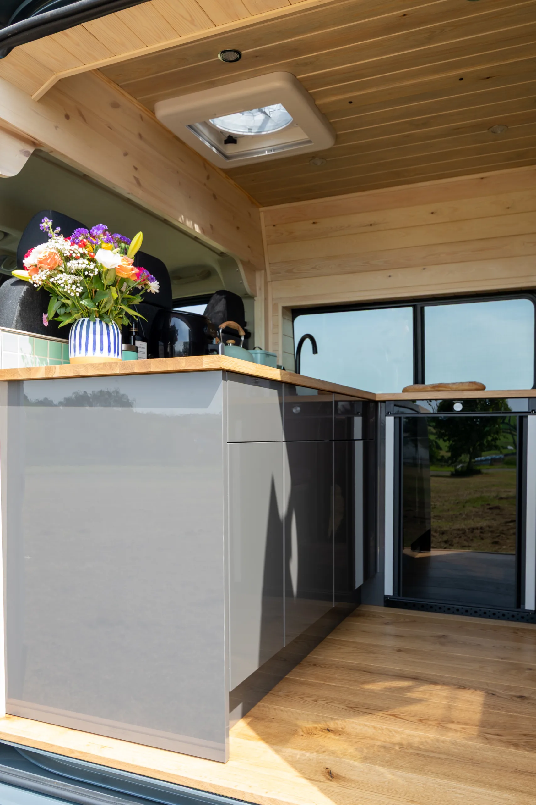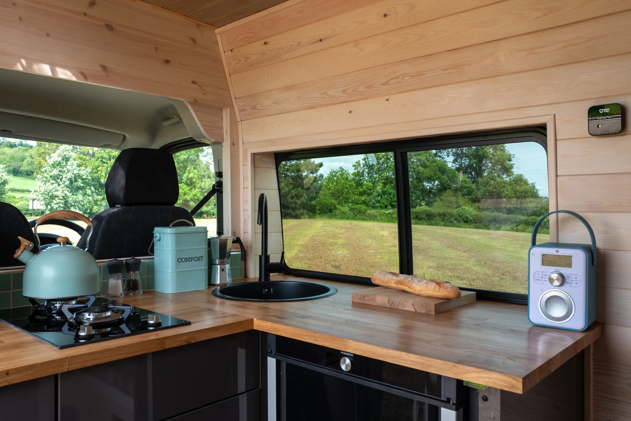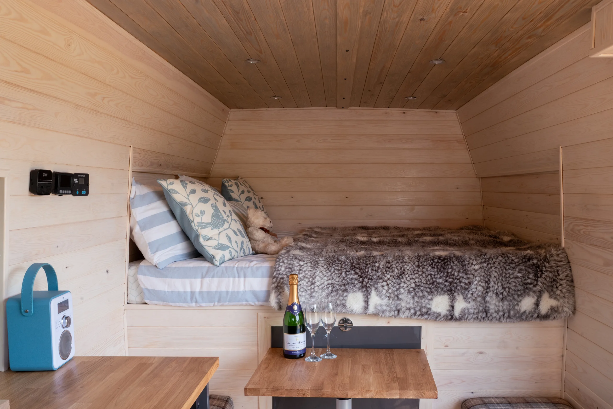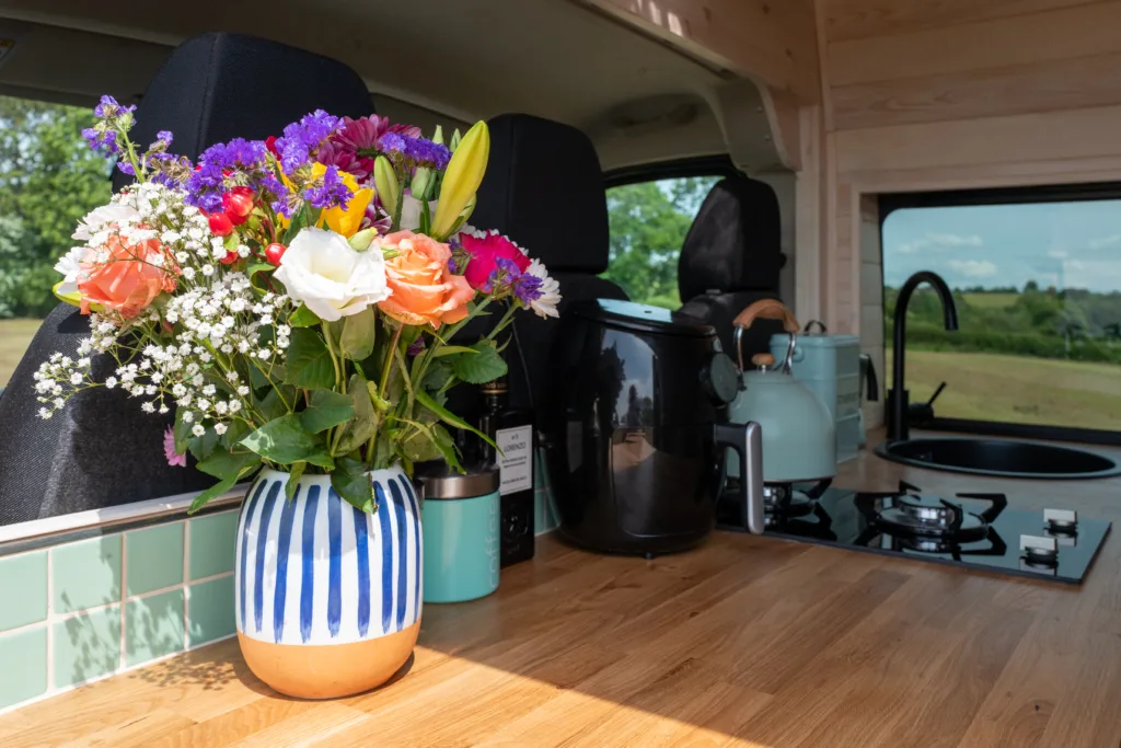 This is a fully off grid campervan, everything works really well and is carefully worked out and the space inside is amazing. Its warm, snug and VERY cosy and romantic