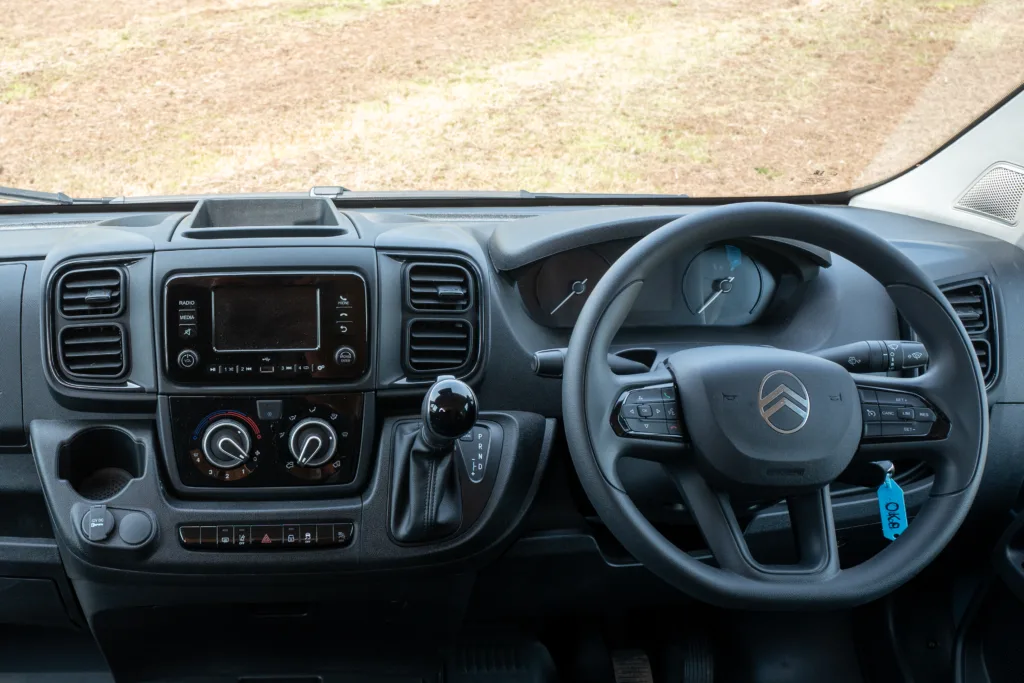 The Citroen Relay van is compact but also benefitting for being the widest on the market, allowing a sideways bed. The interior height is 6’2” also giving you room to walk around.