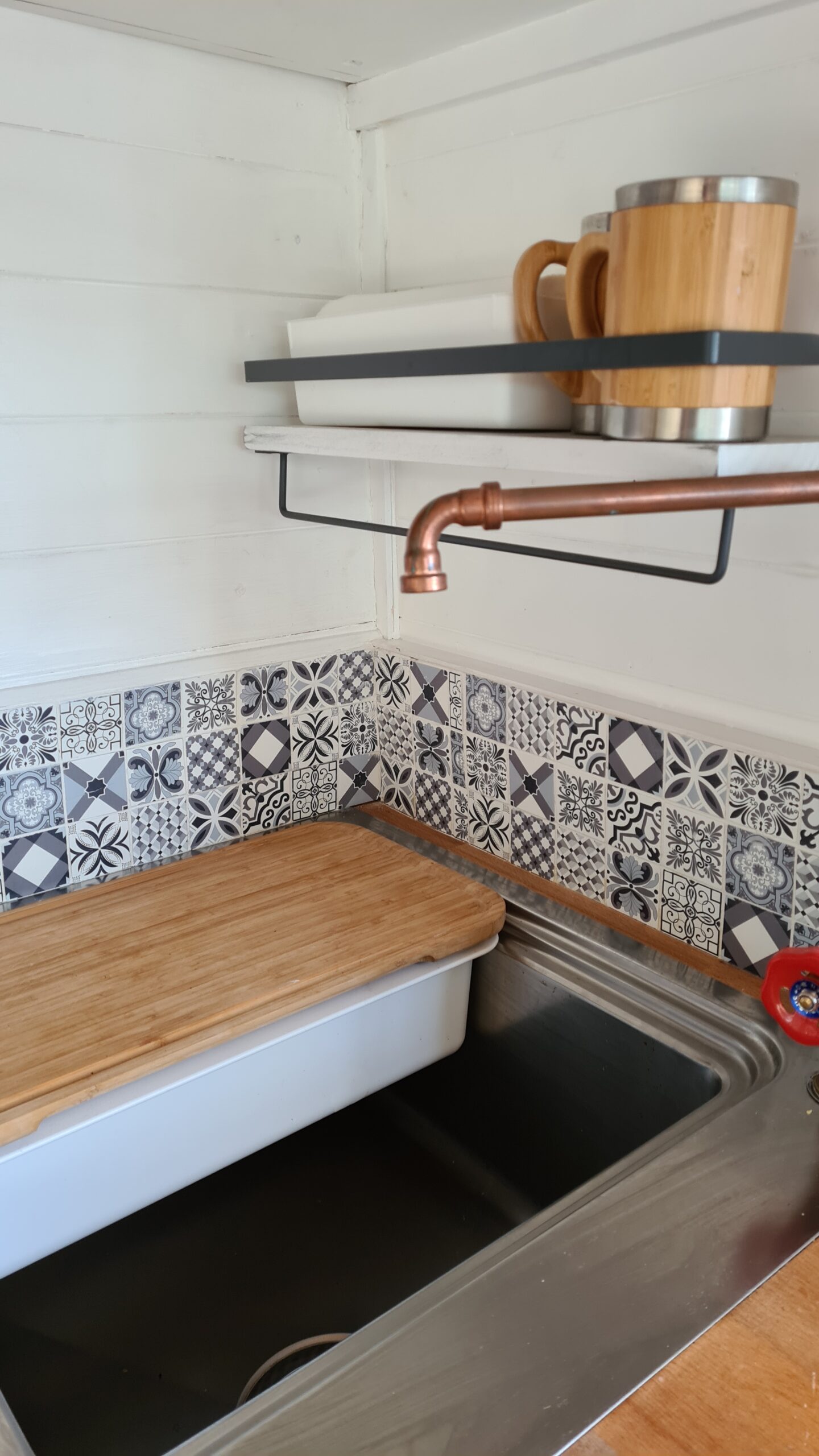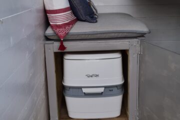 The heating system was designed to be sure that the heat was well distributed around the living area and so the dogs would be warm in their beds. There is also a “drying cupboard” under the sink, perfect for drying off damp towels, hiking boots etc