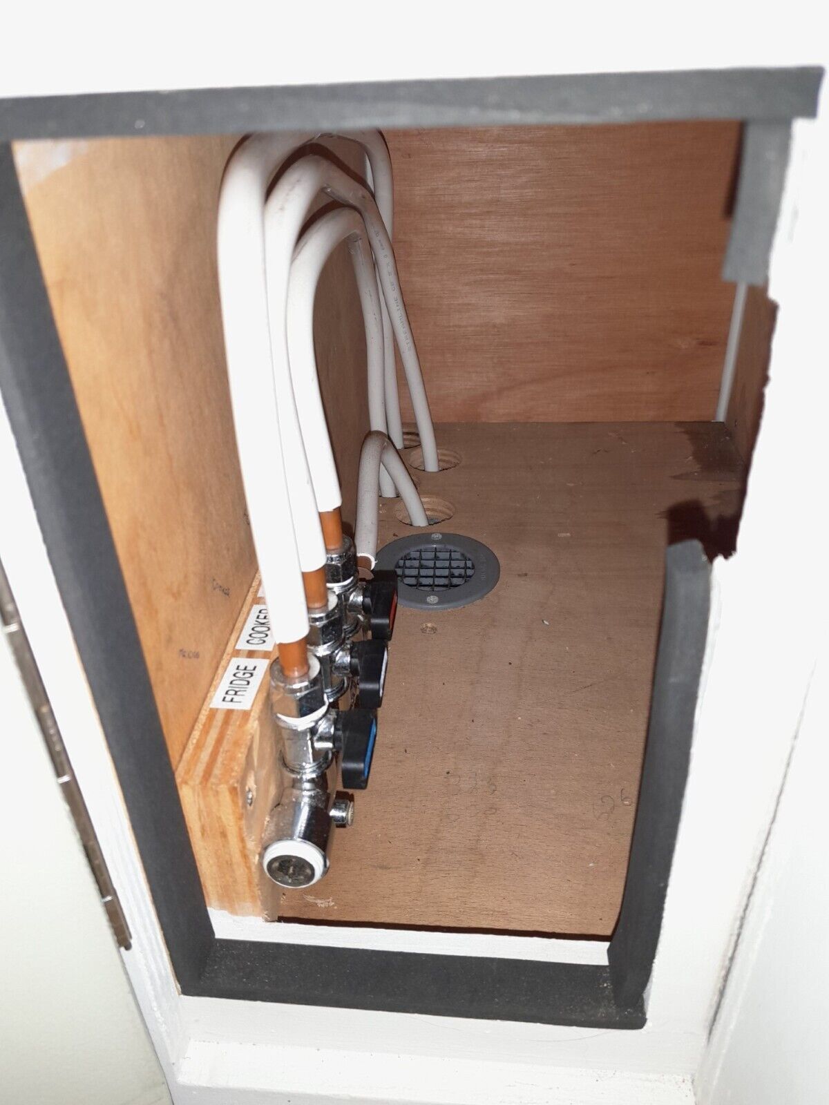 3 – way gas isolating manifold for fridge cooker and heater – sealed cupboard with gas drop out vent