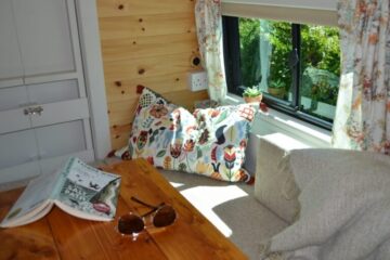 Window boxing (to help increase insulation) contains insulated roller blinds and hand made curtains
