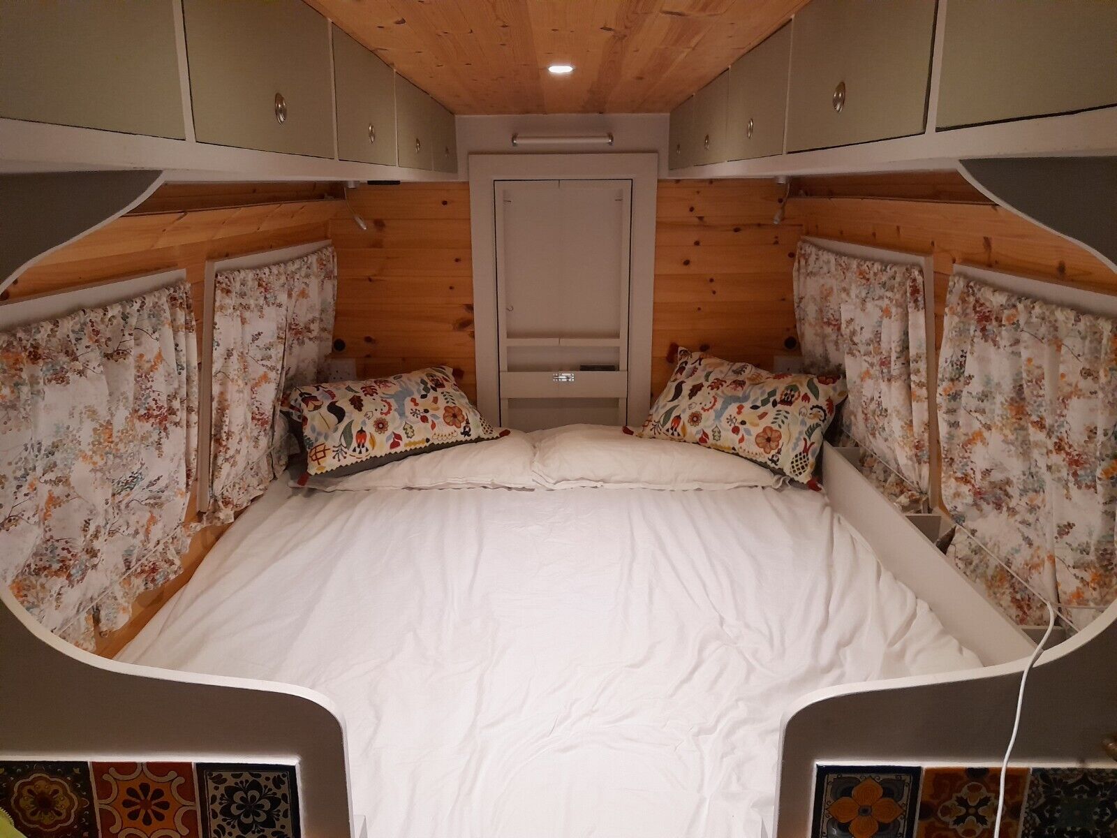 From the bespoke roof rack & winch system for a sailing kayak to the outside shower ( capable of holding up to 50 litres) this conversion has been thoughtfully engineered and lovingly crafted every step of the way, to utilise the space and practicle nature of the vehicle, whilst creating a beautiful, cosy environment to enjoy.