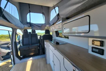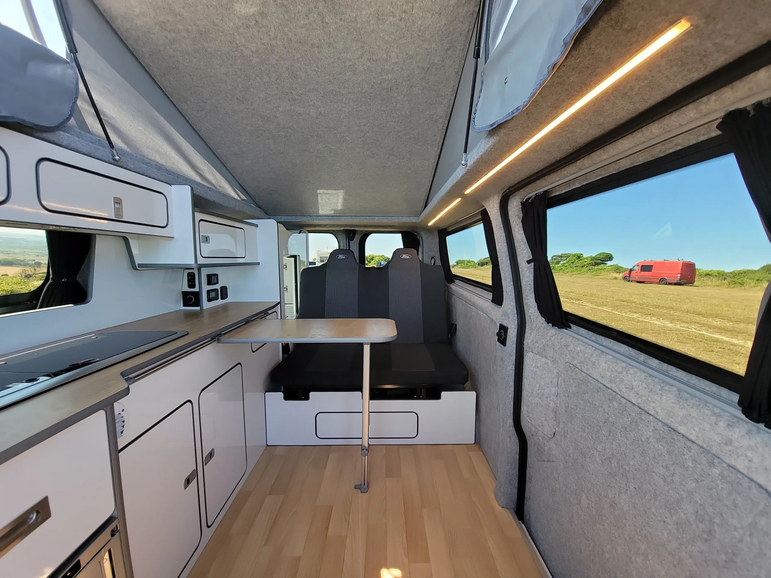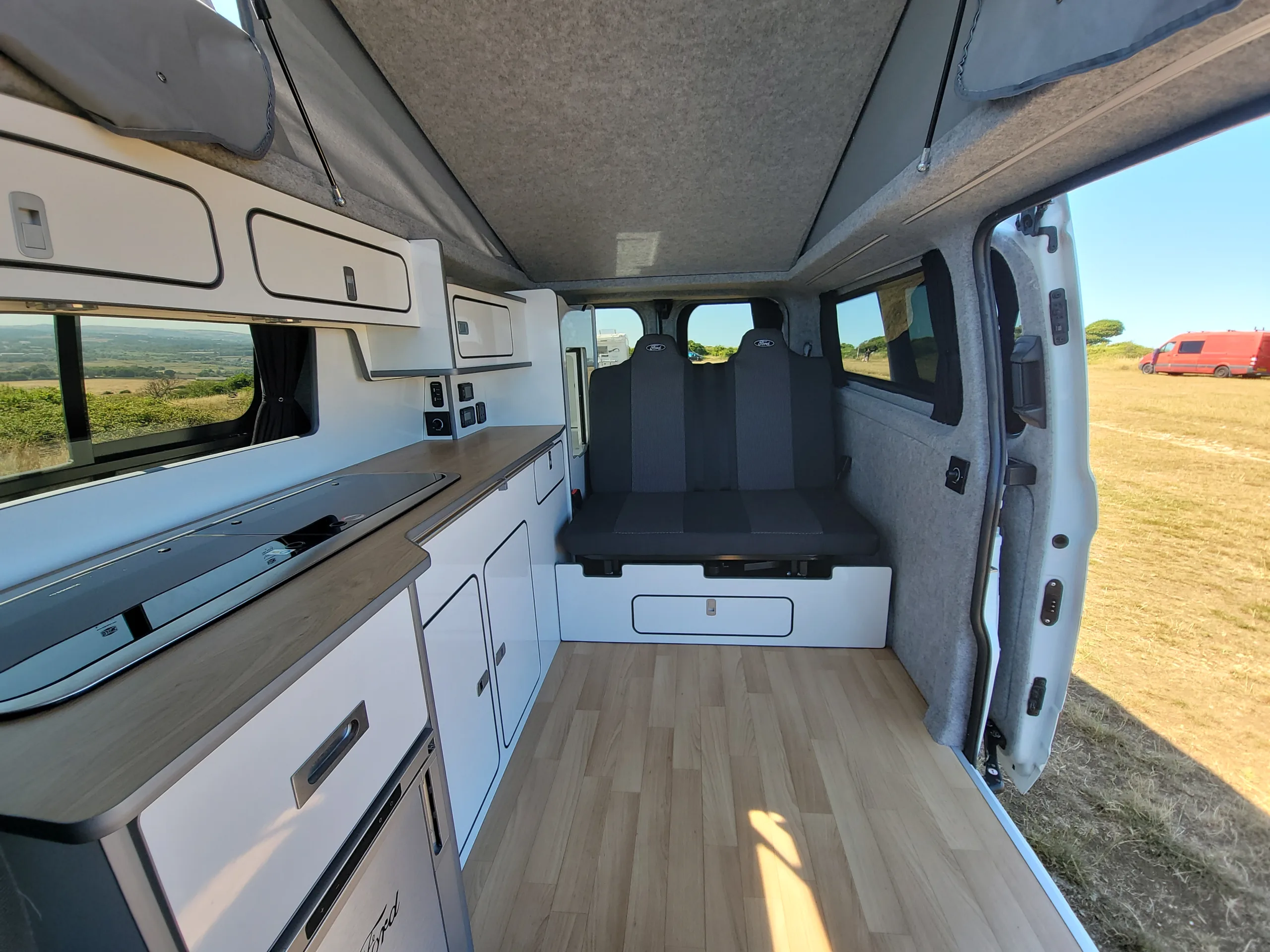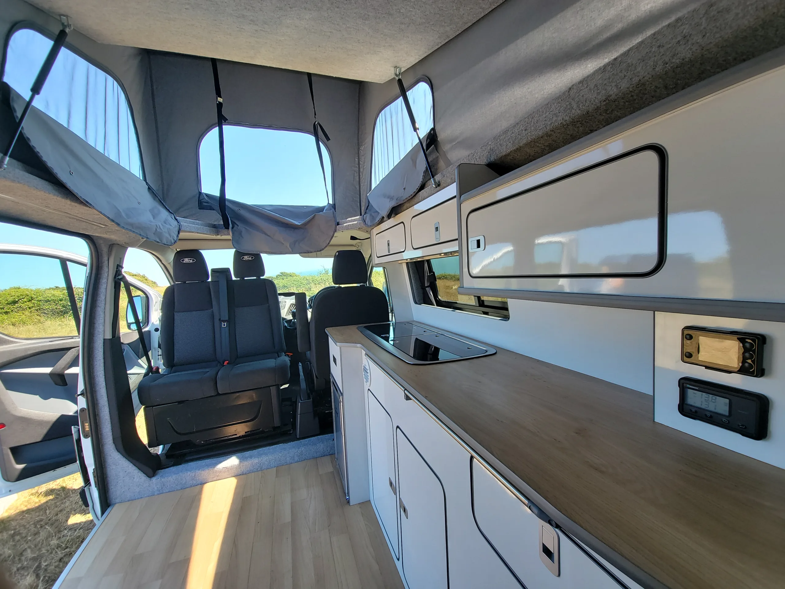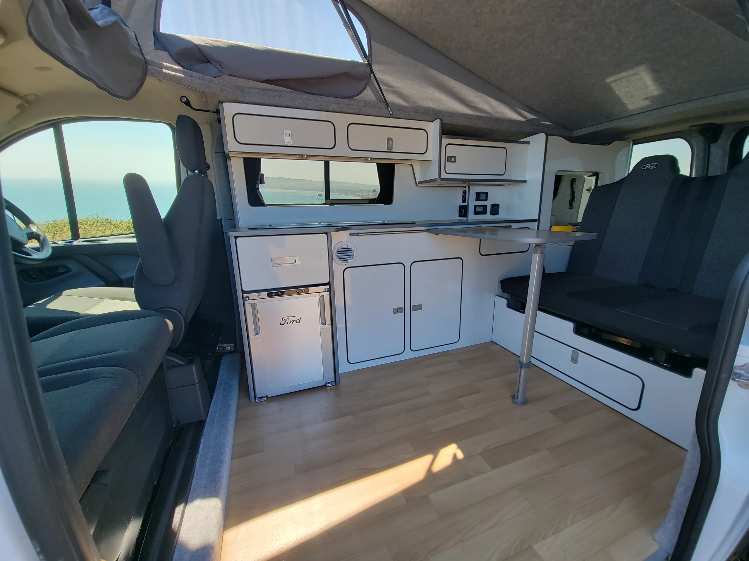 Ford Transit Custom Camper off grid just finished conversion. It is a 2017 model with 87000 miles on the clock. Has just had a new timing belt (wetbelts), MOT and fully serviced with all filters. LWB model so plenty of room inside. Even with the bed down it is still possible to cook at the kitchen while your partner sleeps in.