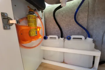 Quick release gas cannisters instead off a bottle ensures peace of mind that no leaks can occur. So no large locker needed for a bottle and the cannister are easily sourced at any camping shop cheaply