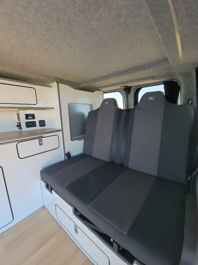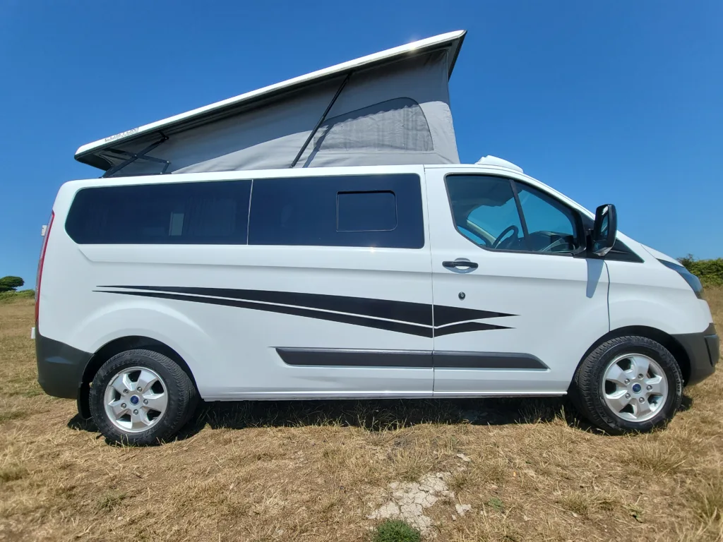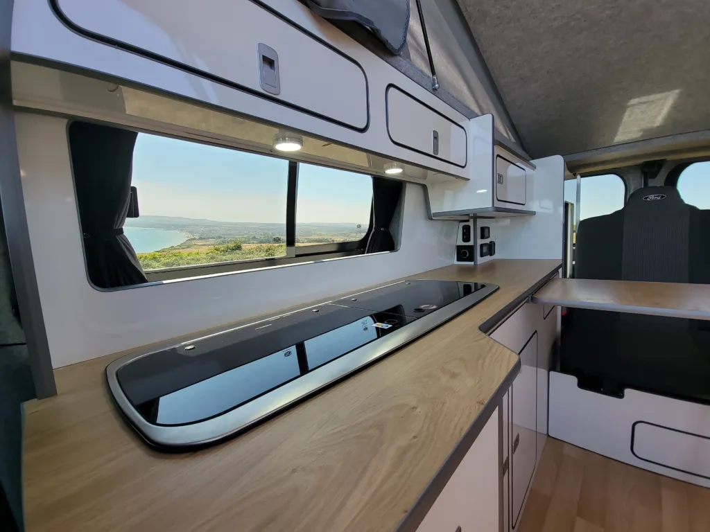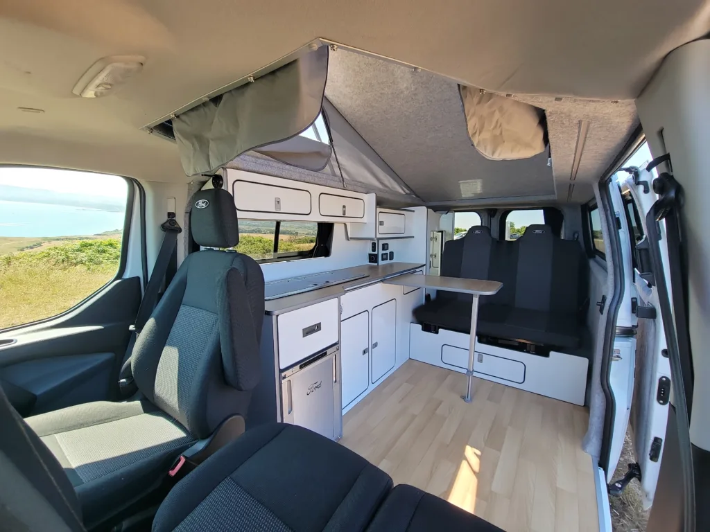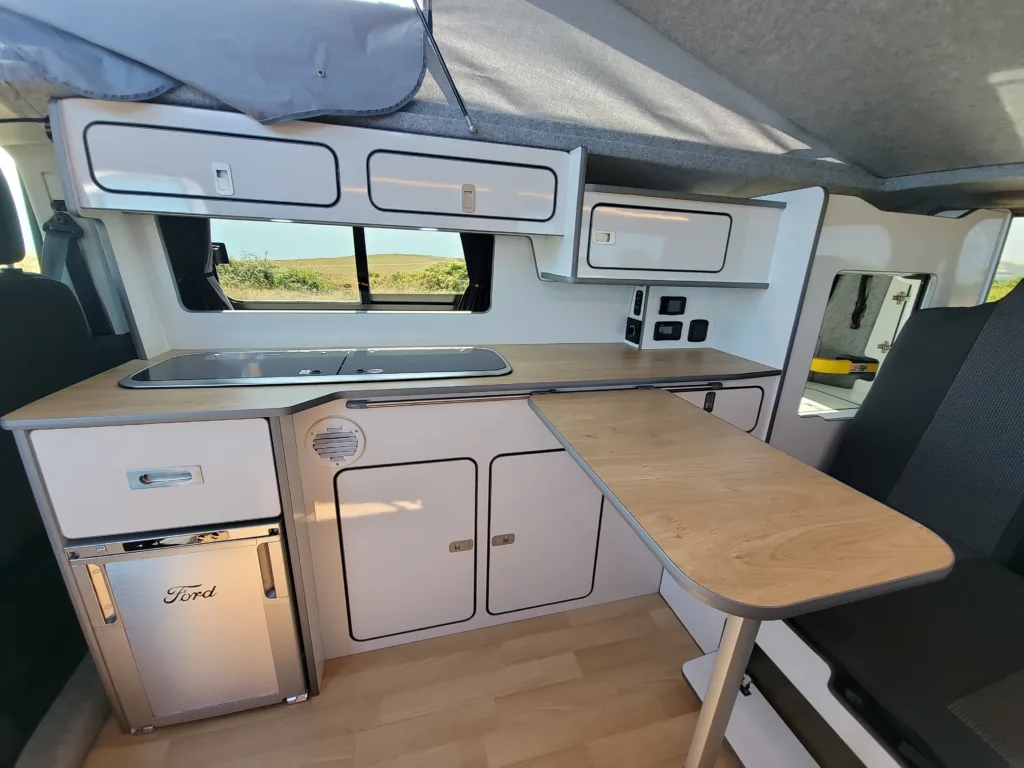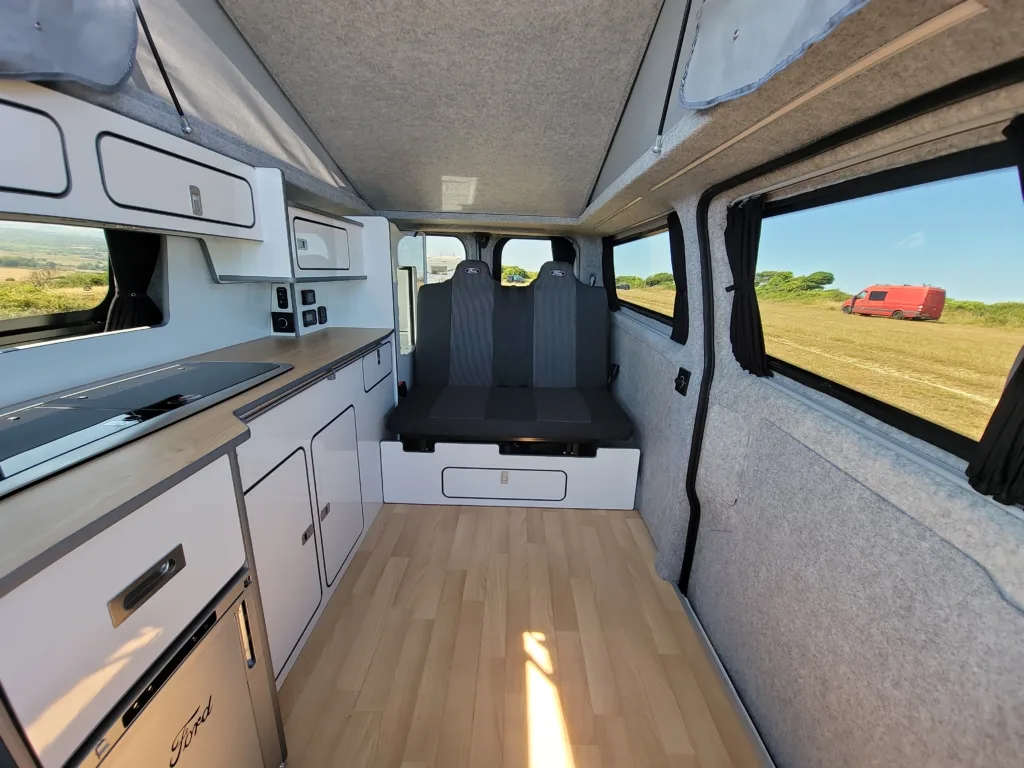 Ford Transit Custom Camper off grid just finished conversion. It is a 2017 model with 87000 miles on the clock. Has just had a new timing belt (wetbelts), MOT and fully serviced with all filters. LWB model so plenty of room inside. Even with the bed down it is still possible to cook at the kitchen while your partner sleeps in.
