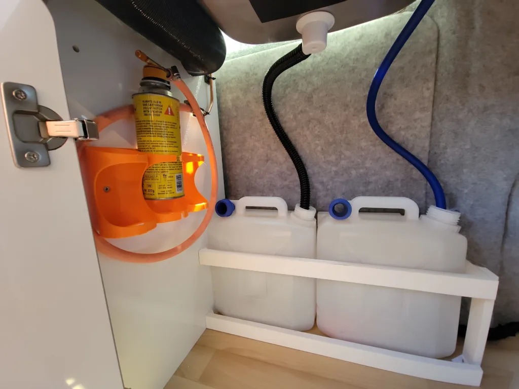 Quick release gas cannisters instead off a bottle ensures peace of mind that no leaks can occur. So no large locker needed for a bottle and the cannister are easily sourced at any camping shop cheaply