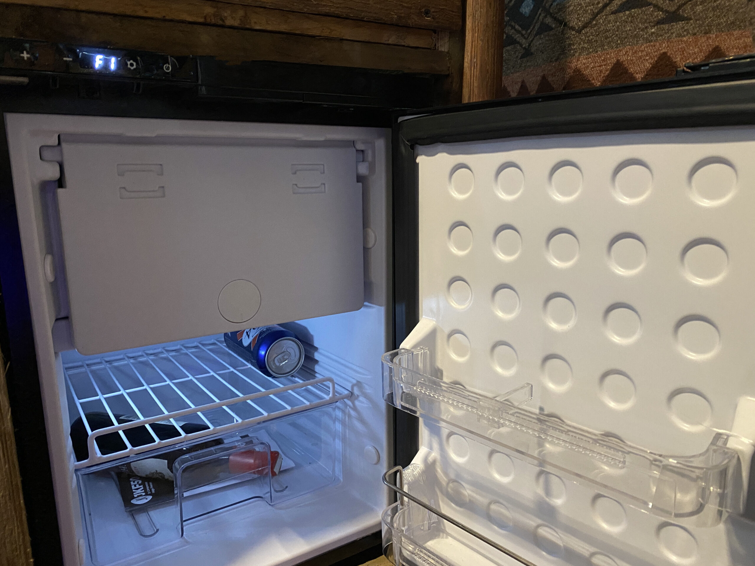 One of the most notable features of “Woody” is the side deck, providing an absolute godsend in good weather and drawing loads of attention to the horsebox. And when the weather turns chilly, fear not, because “Woody” has got you covered. The genuine full-sized wood burner with a double-skinned chimney flue adds warmth and cosiness to the living space and a calming view of the flames through the glass door. Old-style Vanessa cooker with an oven, grill, and two-burner hob provides ample cooking options, you’ll never go hungry or cold. The brand-new compressor fridge and freezer provide enough space for your food and drinks. Compressor fridges draw less power and operate with less noise.