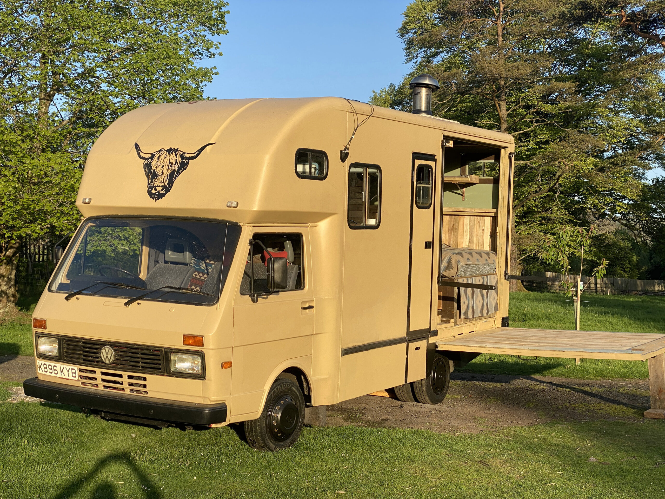 This camper was going to be my dream full-time off-grid home but due to a change in circumstances, I am sadly now selling her. She was ready for a Portugal trip next month too. Need to sell and a new owner to take care of her.. Just back from a Scotland trip. FULL YEARS MOT NO ADVISORIES. NEVER BEEN WIELDED. LAST MOT WAS A BULB OUT.