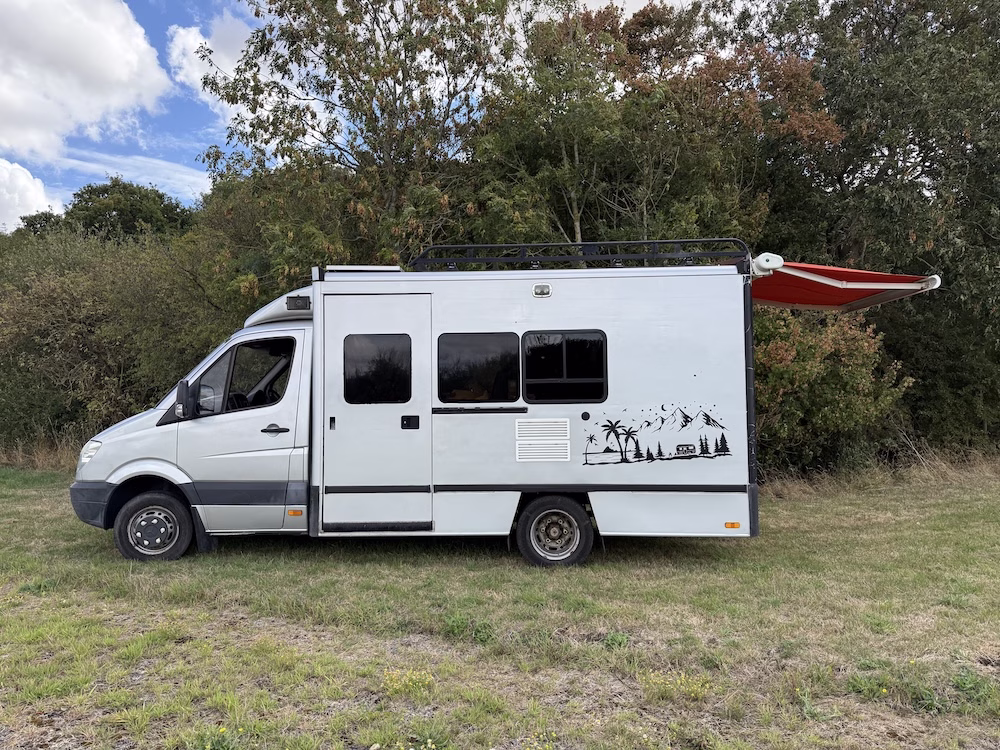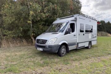 Coach built met police command vehicle with a 3 litre auto diesel engine which purrs at idle & roars when cruising on the open road. The main box section is carbon, GRP so will last a lifetime without rust. The main living area is highly flexible with standing room and a winch bed system with foam mattress to allow dining area & main sleeping option. The dining area has a hard wood table with bench seats for family dining converting to a second double bed / bunk for children, below the main bed.