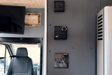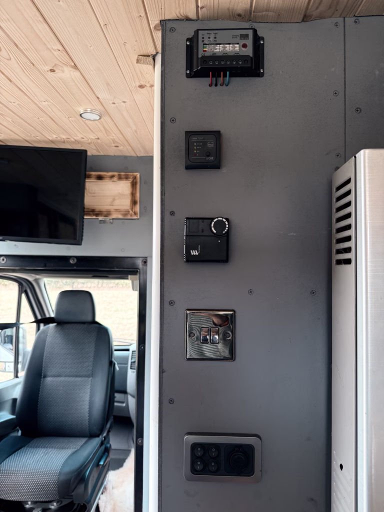 ◦ Hook up electrics to split relay charger / onboard 500W inverter with solar panels on roof & 240V plugs with USB sockets