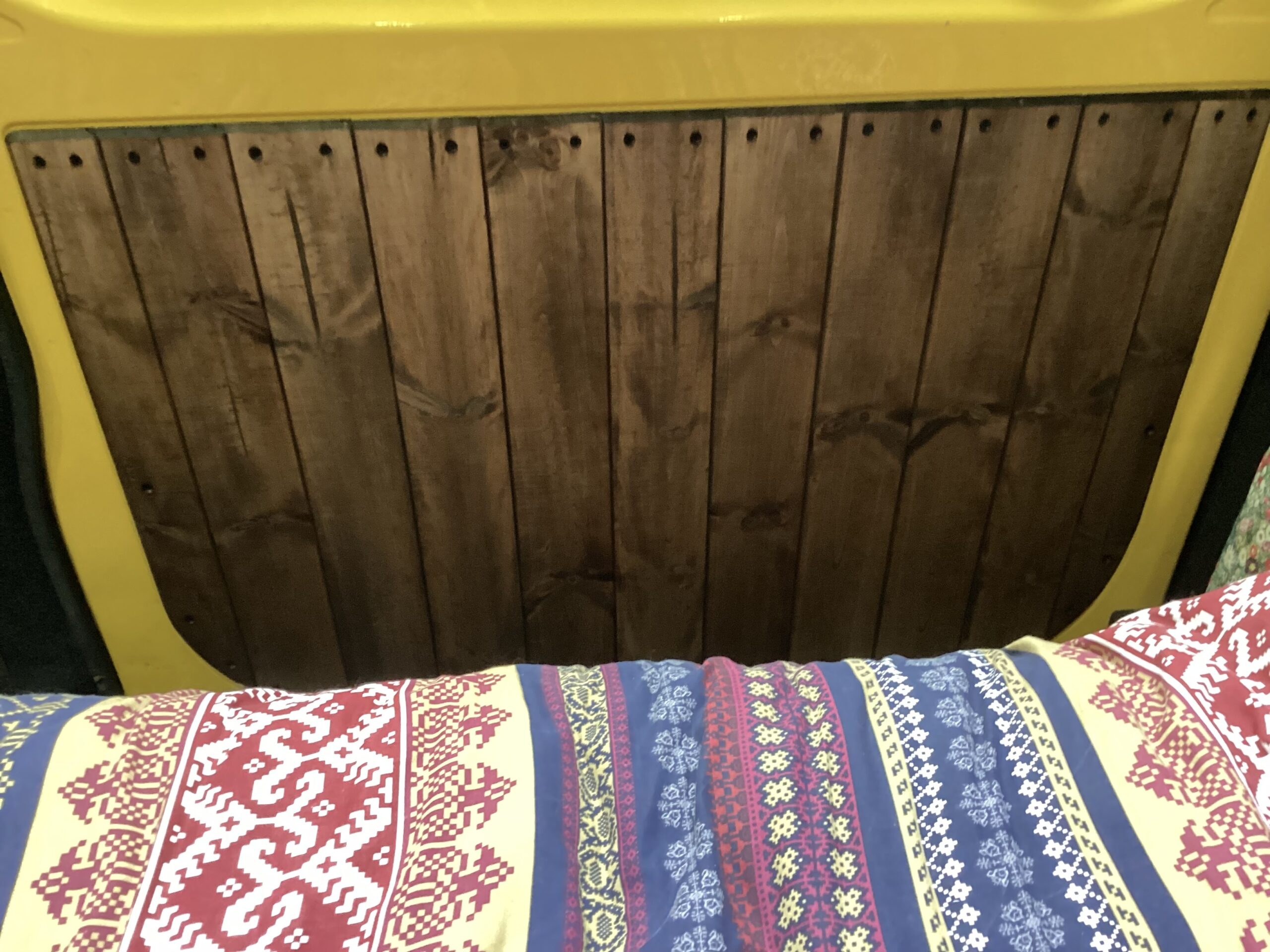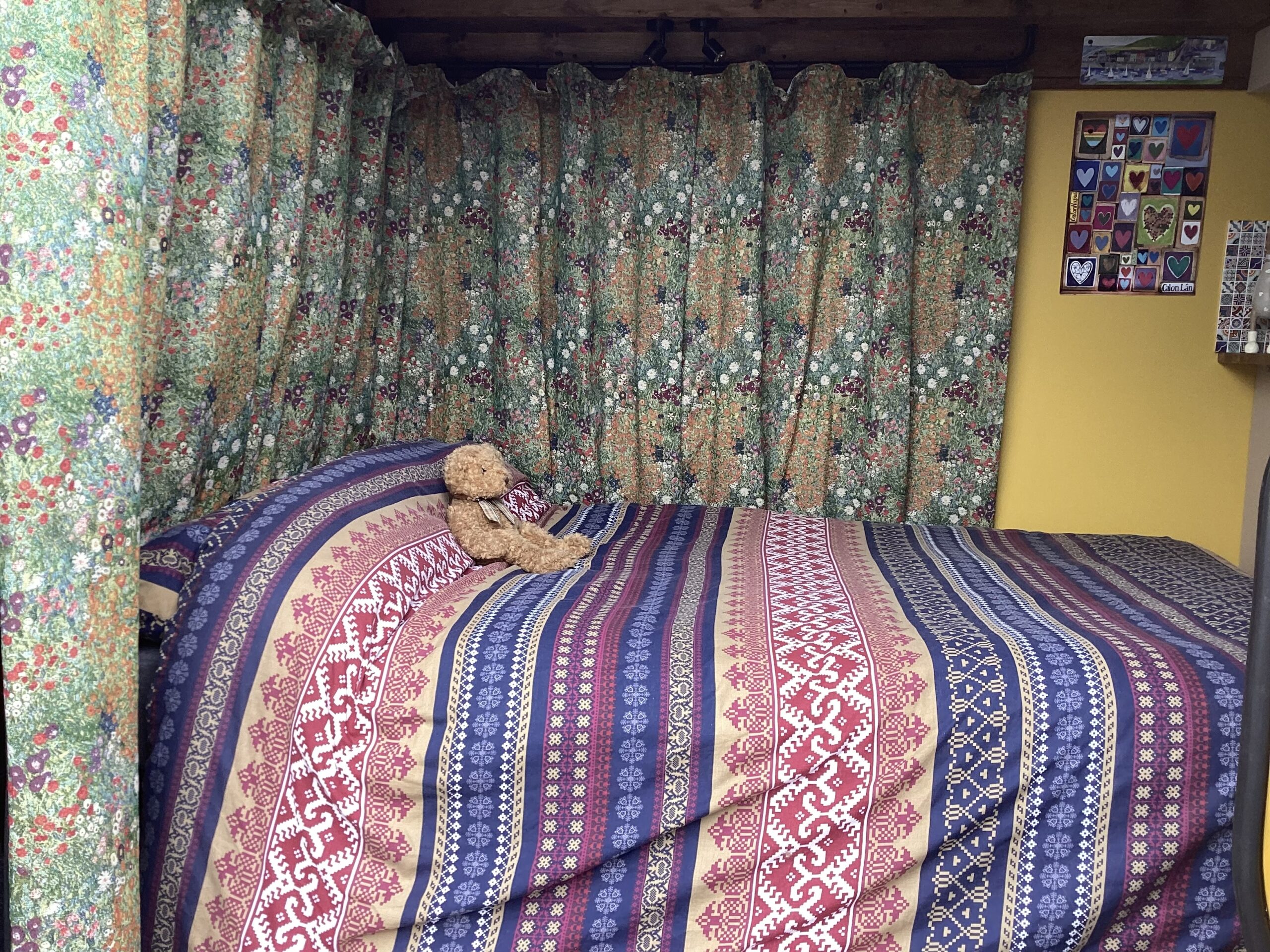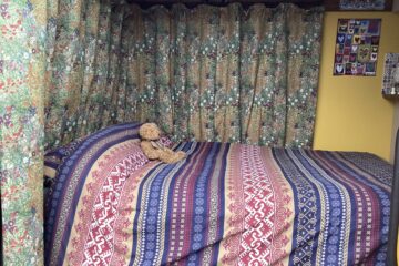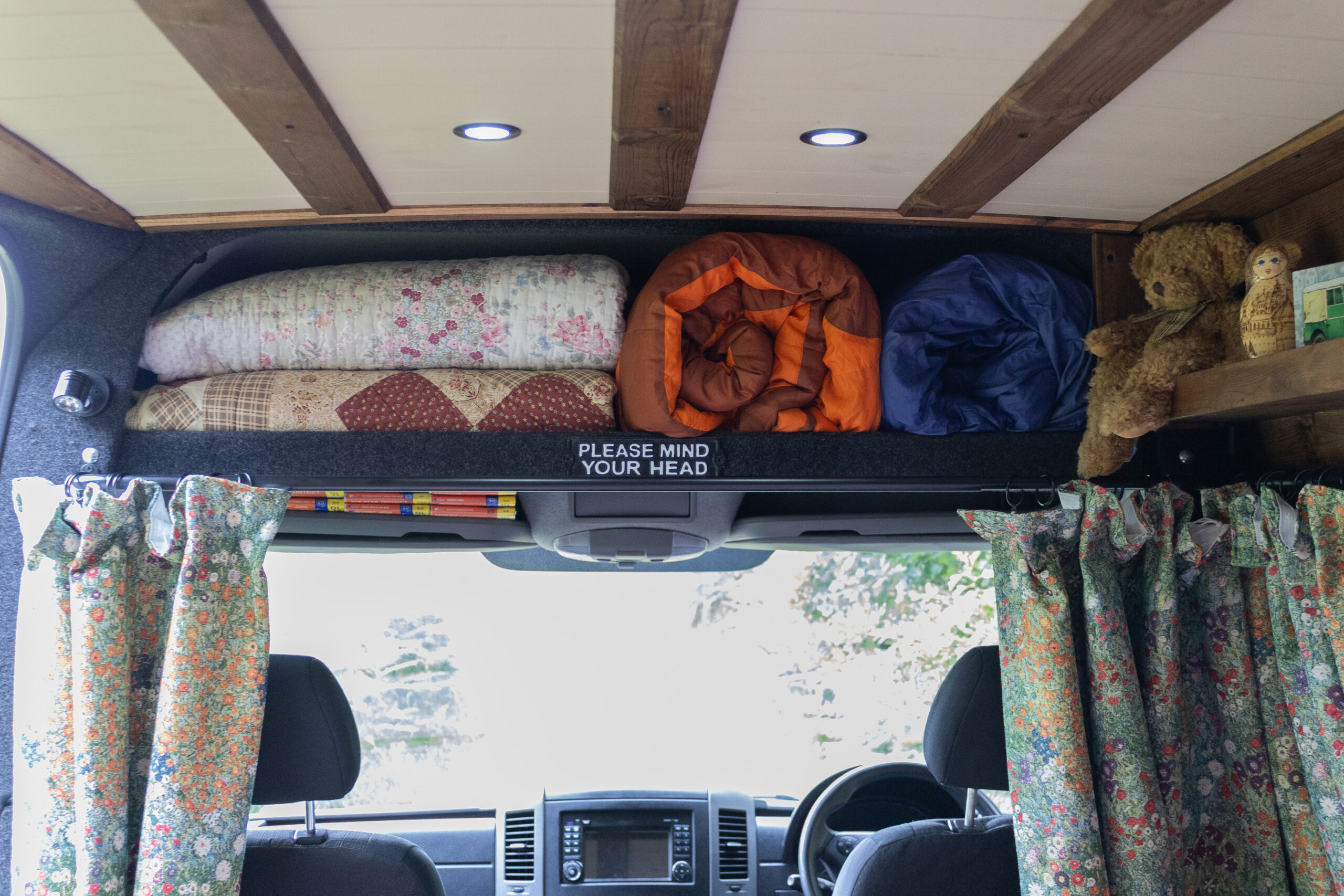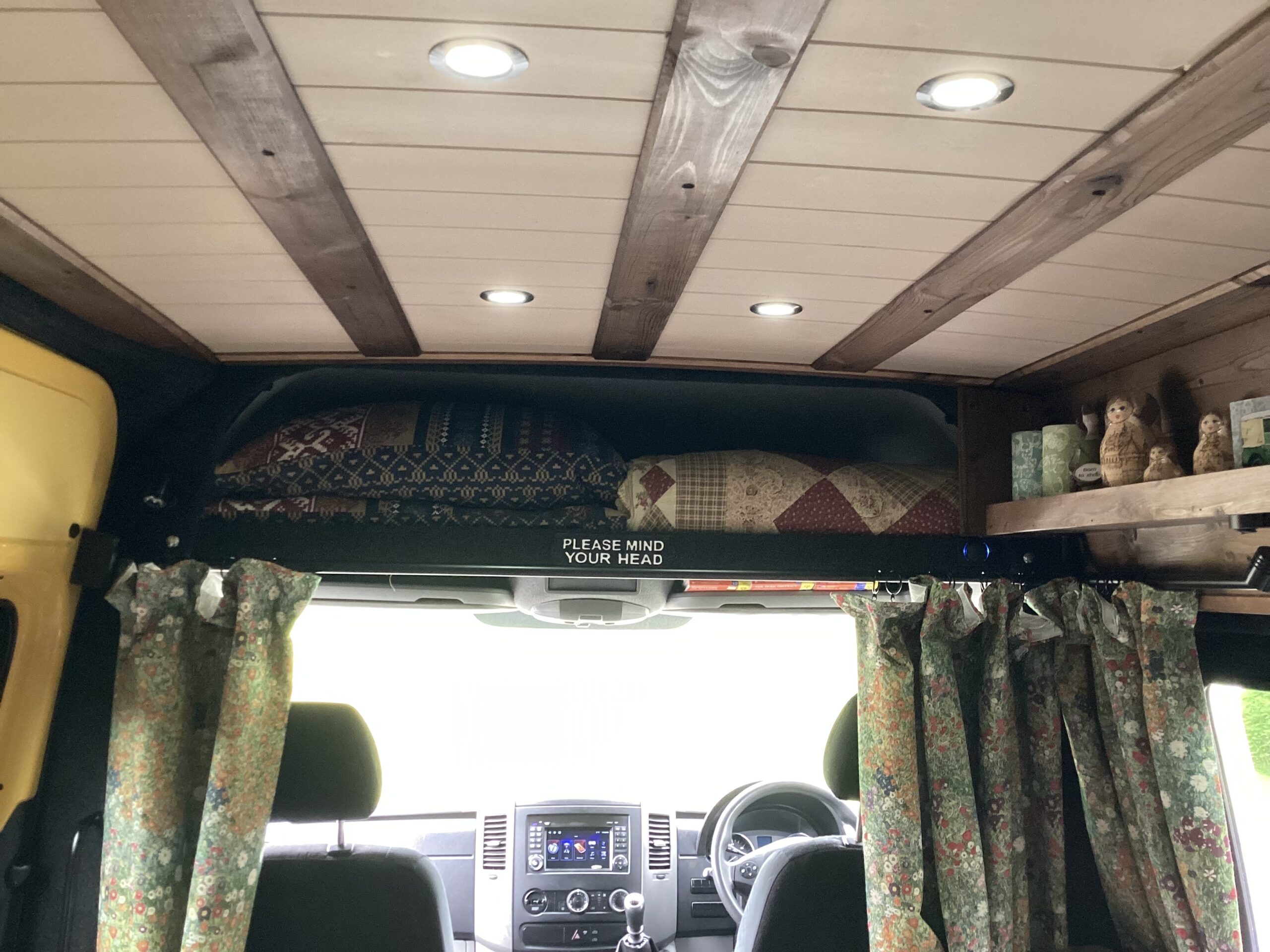 Custom made curtains which separates the cab from the living space.