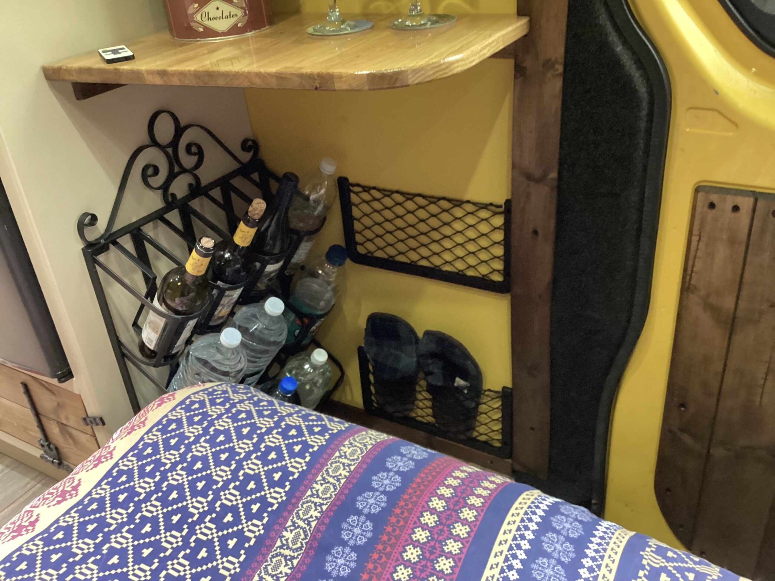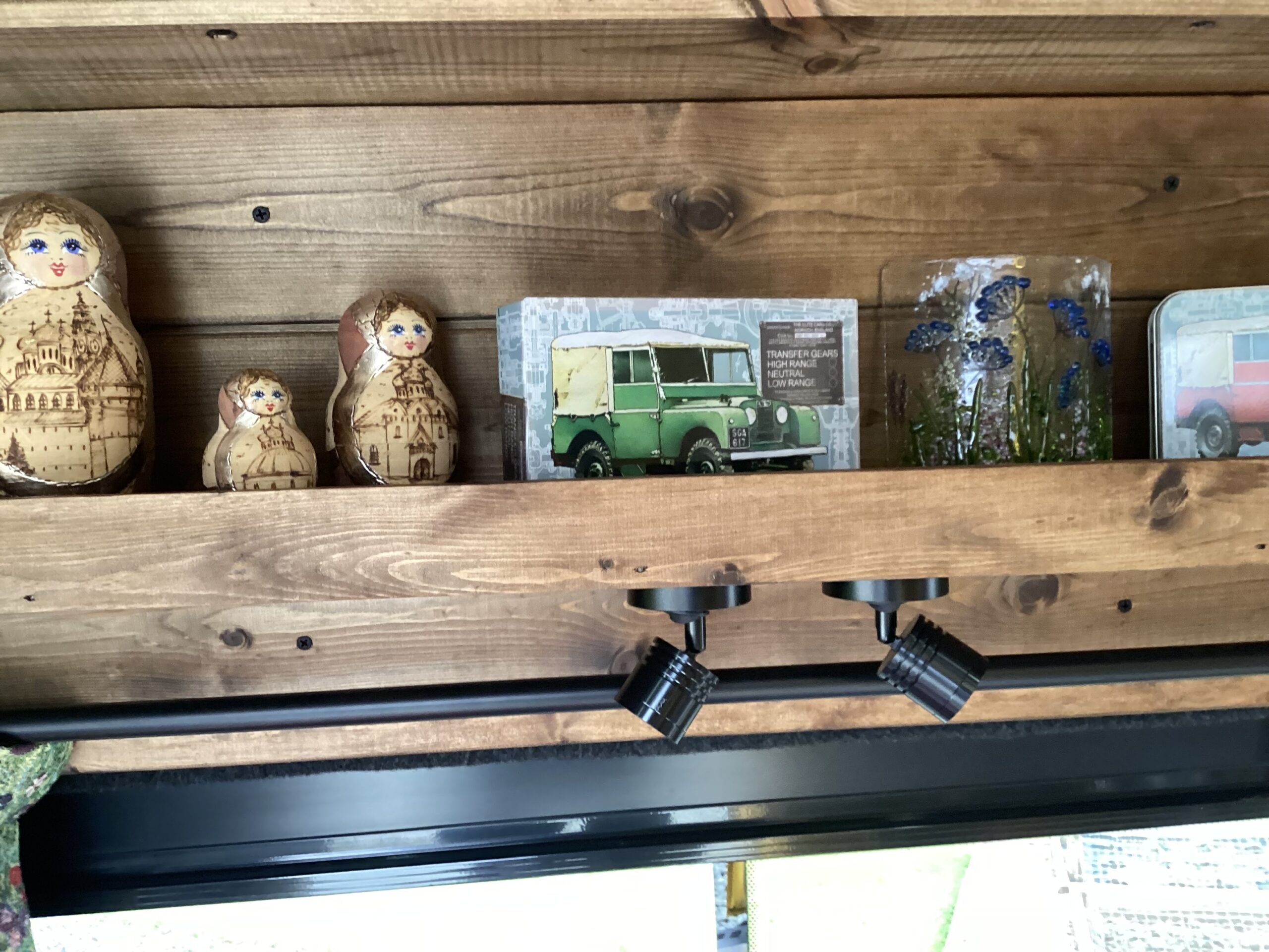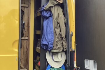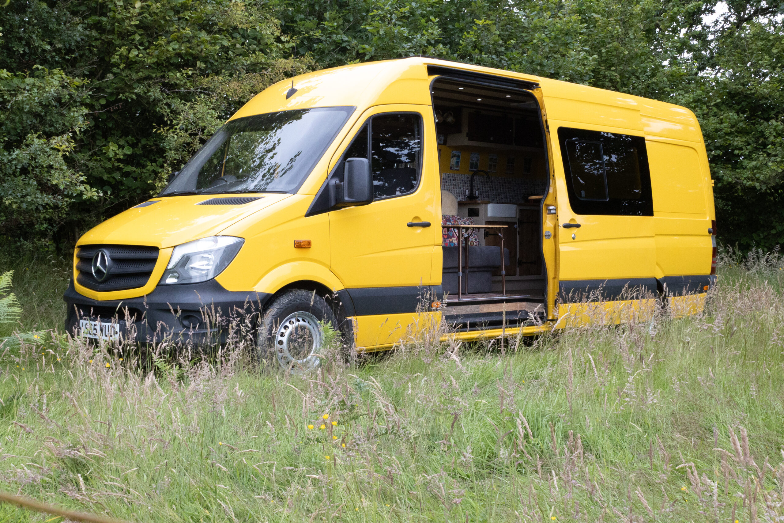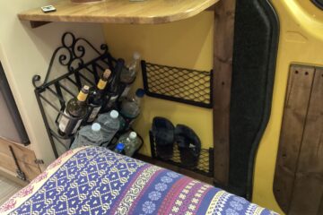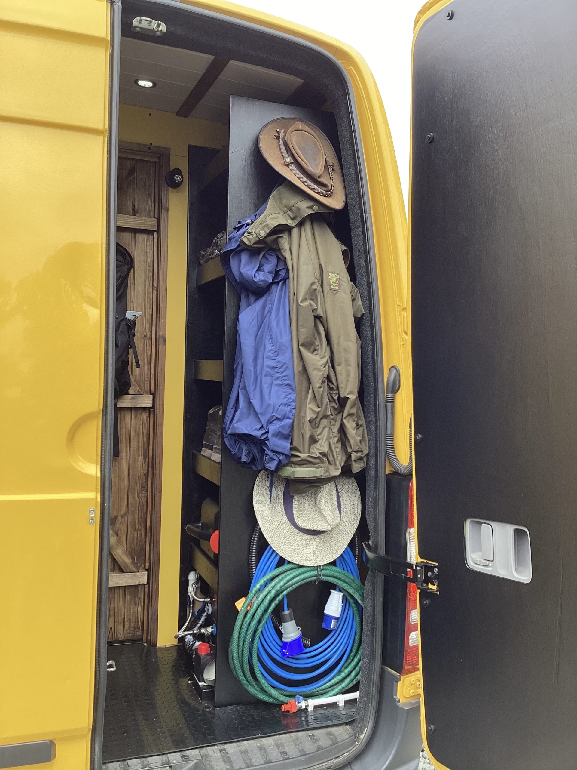 The layout of the van has been designed so two people can comfortably live within the space without falling over each other, whilst being able to take in the scenery from the comfort of the sofa. A separate shower/toilet/storage room being at the back of the van gives privacy and useful space for wet coats, boots etc.