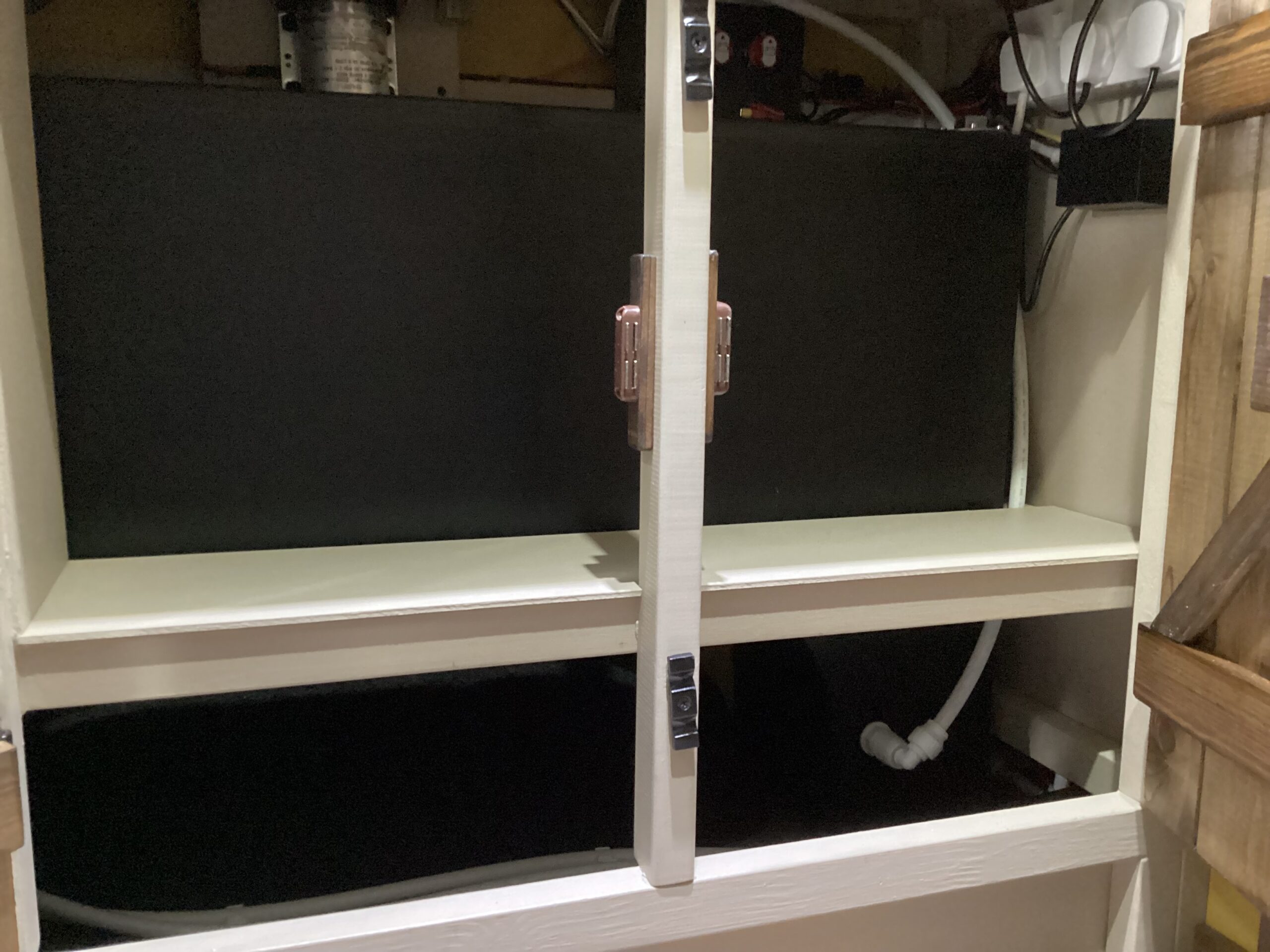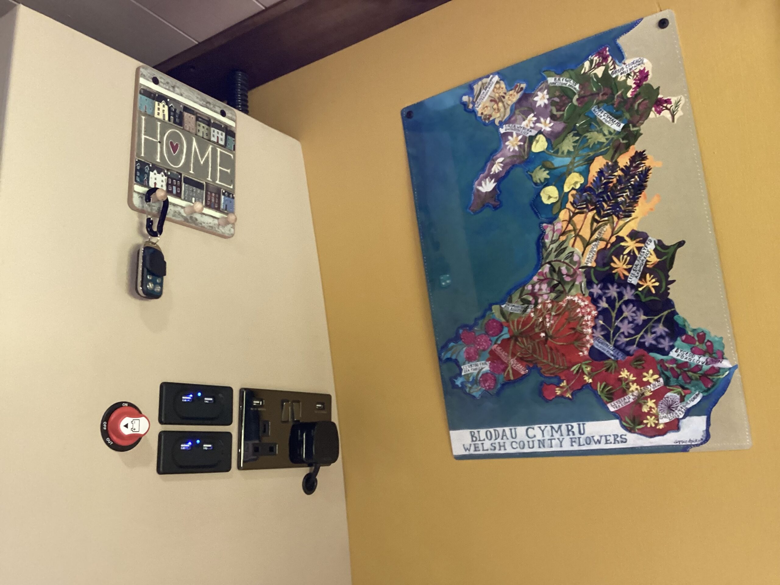 240v electric system with 2 double sockets with usb’s. Built in Victron Battery Charger.