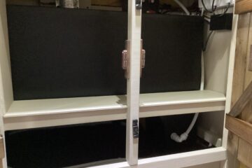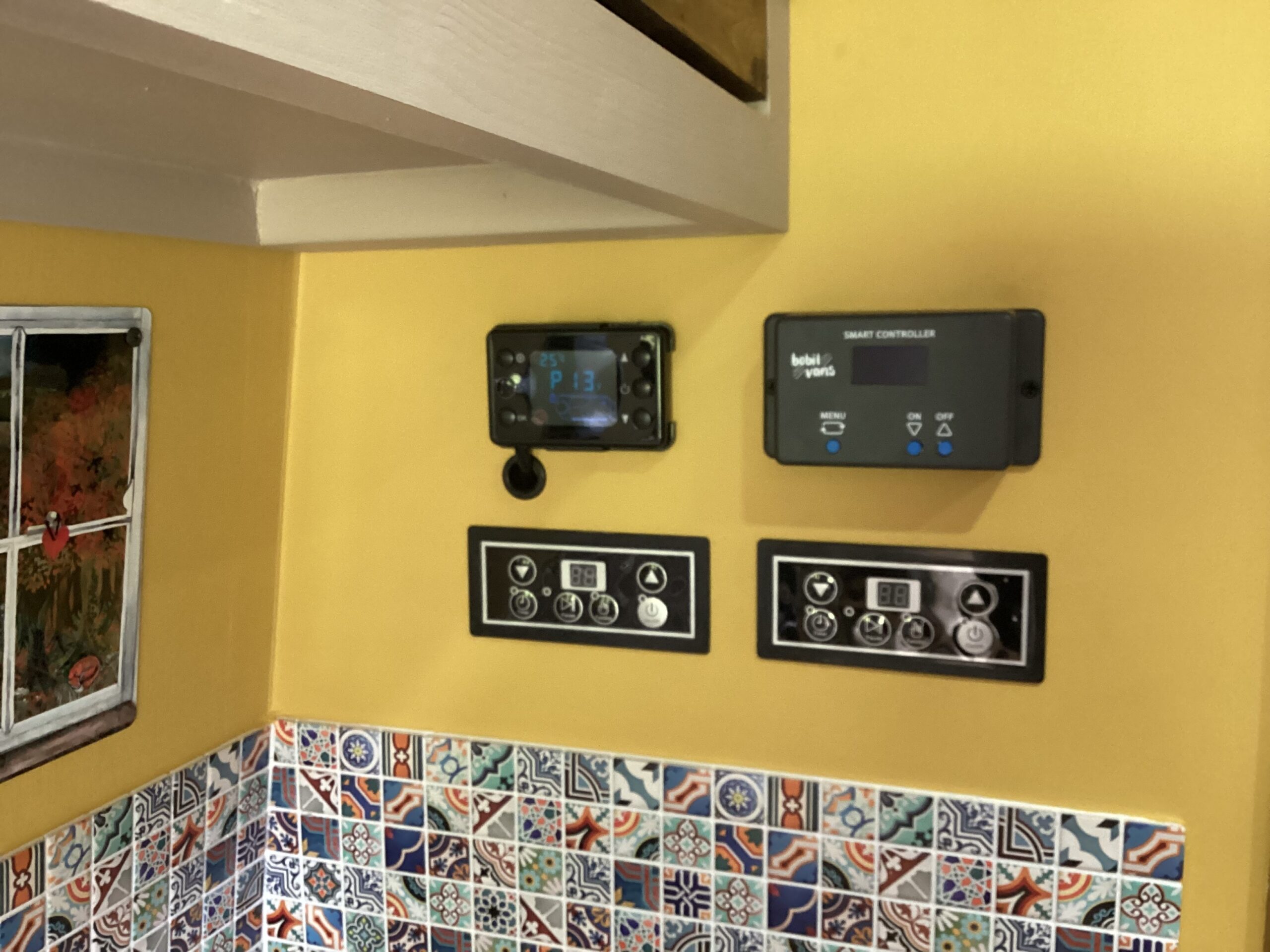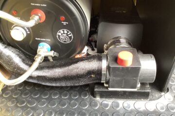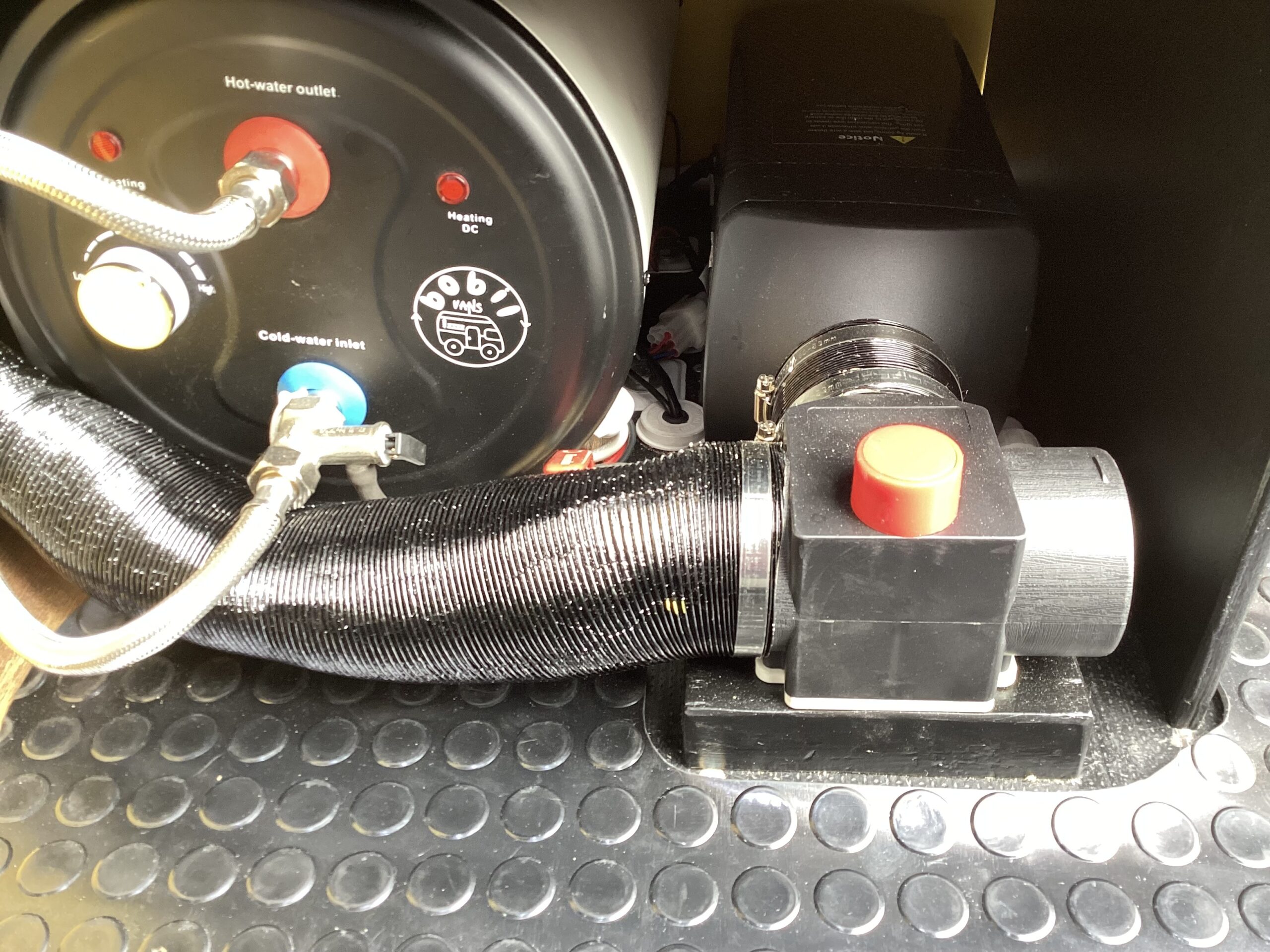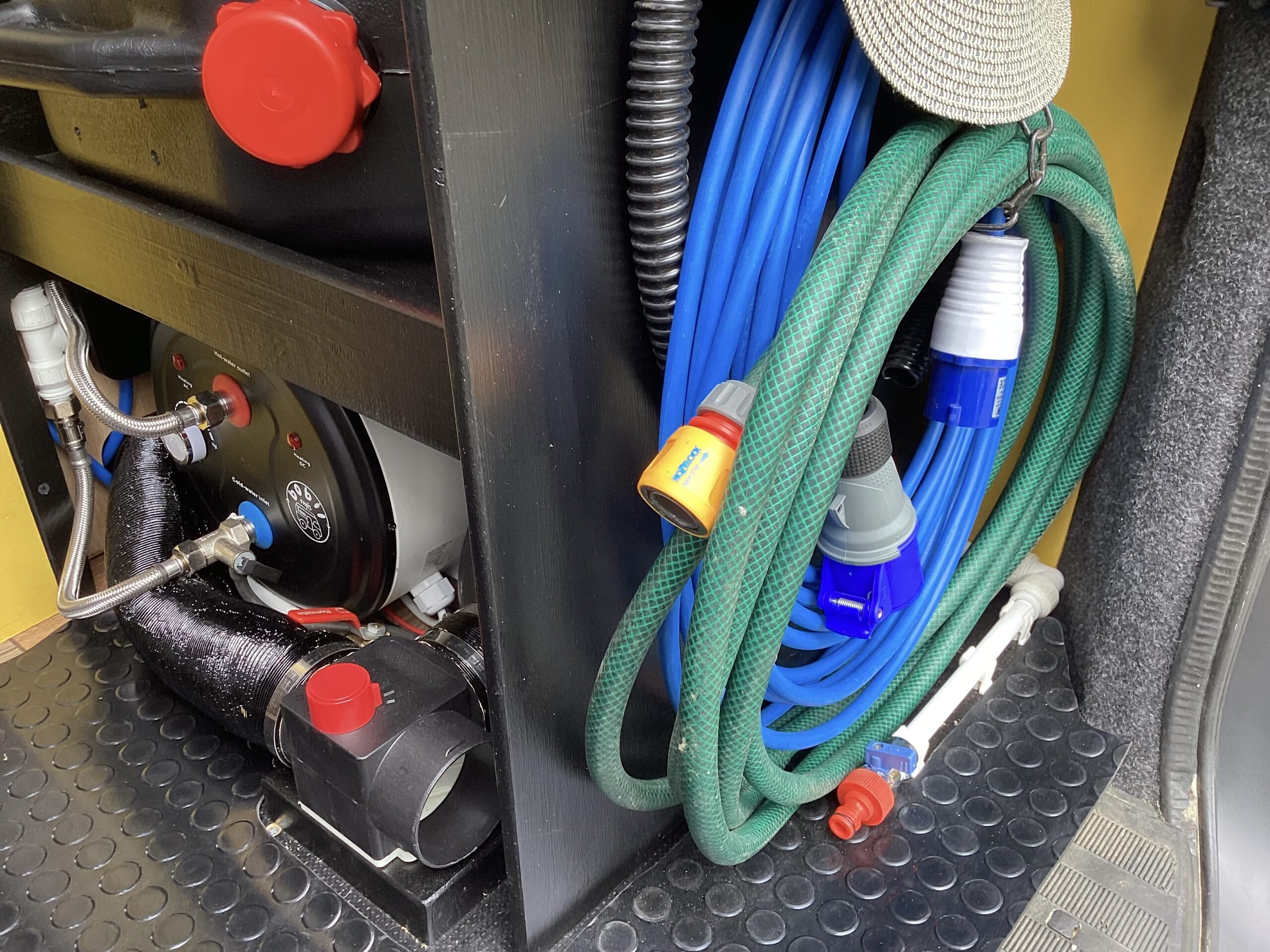 Bobil vans 240/12v 10Lt hot water tank with water level sensors, providing hot water to the thermostatic shower and to the kitchen tap.