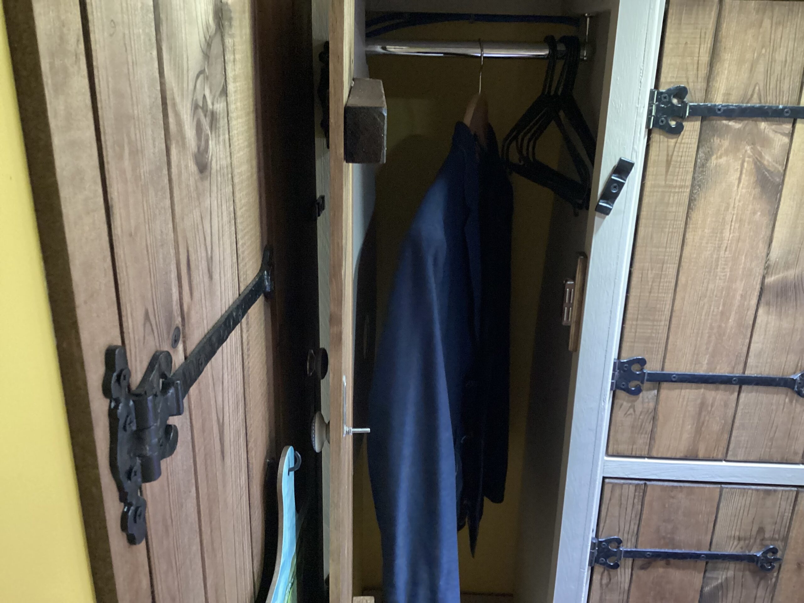Wardrobe with shelves below and extra storage on shelf above cab.