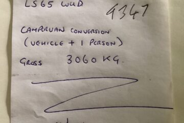 The completed van weighs 3060Kg which includes over 1/2 tank of fuel and the driver. This gives 440Kg of payload which will be more than enough to carry a passenger plus luggage/equipment for your adventures.