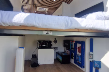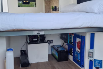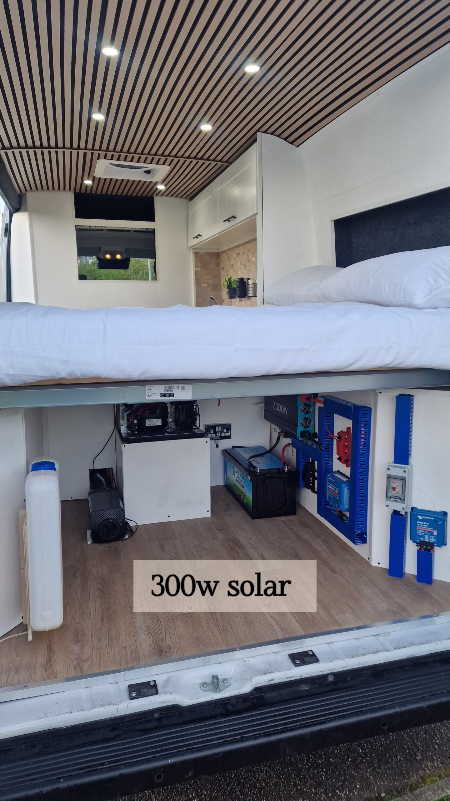 At the heart of the system is a 460ah lithium battery — one of the largest battery setups you will find in a campervan of this size.