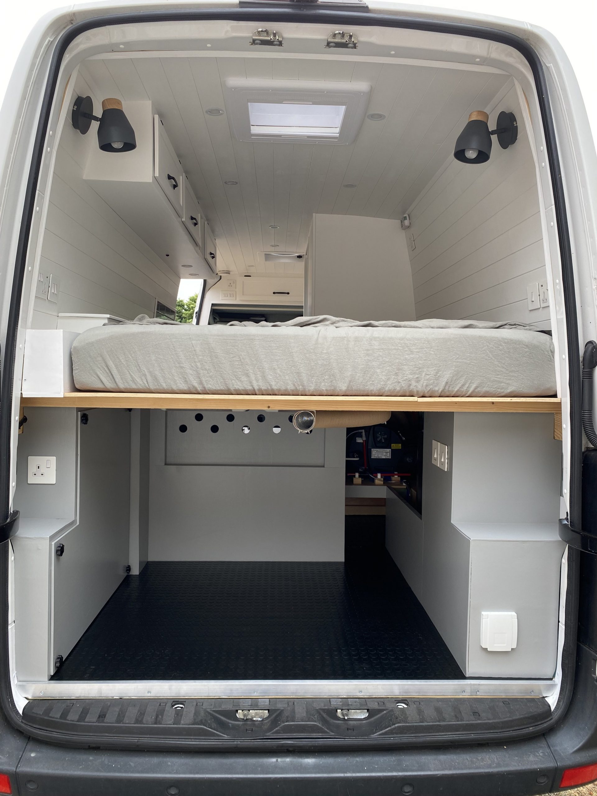 – 30L LPG underslung tank for oven, hob, water heater and van heating. Also feeds bbq hook up for external use.