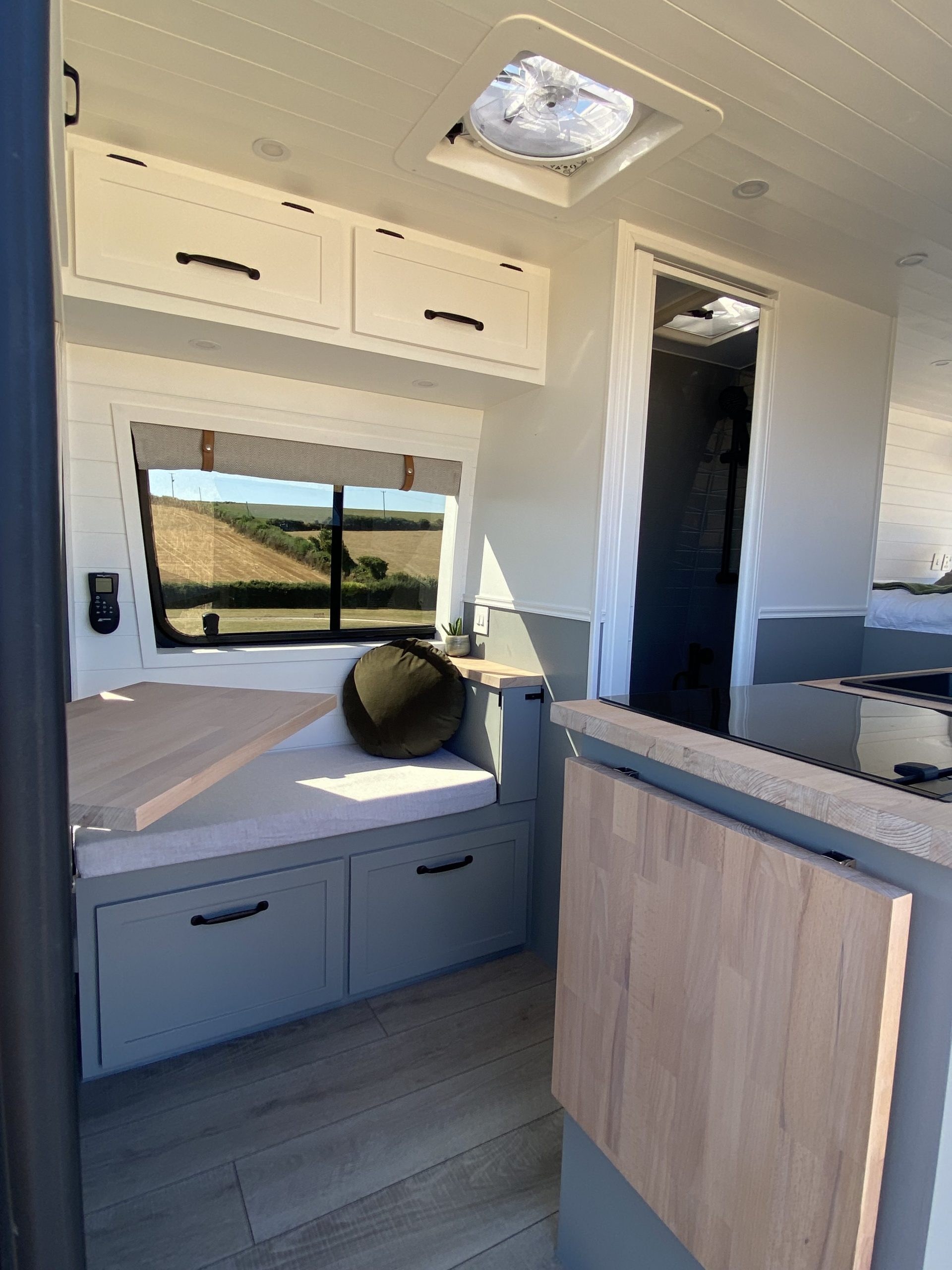 We’re proud to introduce our self converted campervan ‘Patty’. Previously a pharmaceutical transport van, we collected her in September 2021. With much love, sweat and tears, we finished the conversion in August 2022, and have since enjoyed many trips as a family of 3 (two humans and a collie). She has been very reliable for us, venturing as far as the Dordogne region in southern France, as well as many sites closer to home, all with no issues.