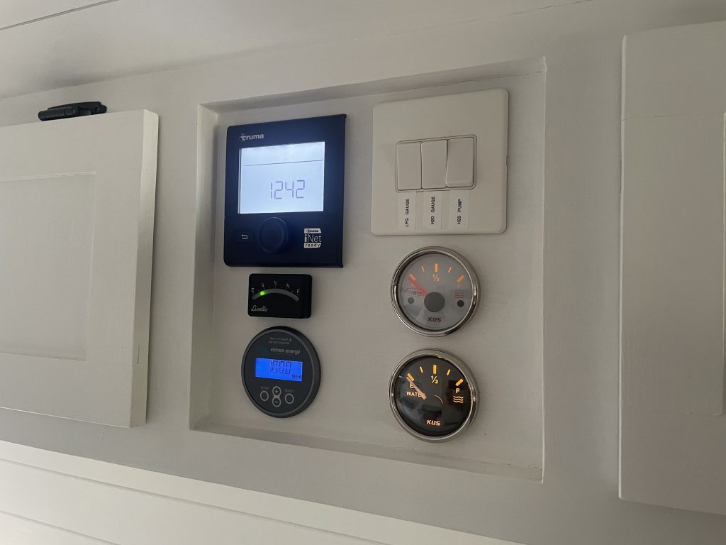 – 250amph independent leisure batteries (2x 125). Both 12v & 230v system including LED down lights, USB ports and standard UK plugs. 500w inverter which changes to charger when connected to shore hook up. Includes standard UK and EU plug adapters. 350w solar panels (2x 175). 30A battery to battery charger for when driving.
