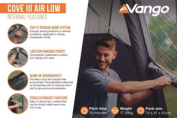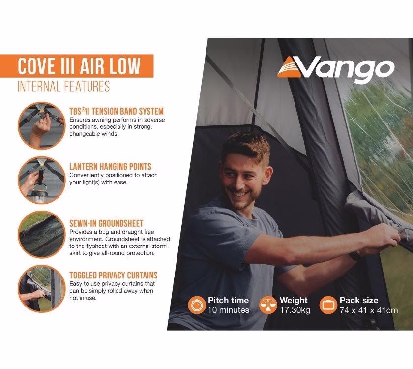 > Brand new Vango Cove 3 Air driveaway awning, with extras like internal bedroom and carpet comes included in the price!