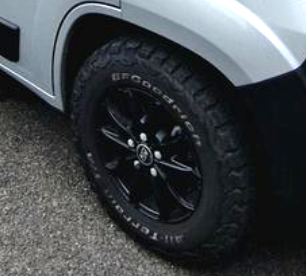 The exterior features Goodrich All-Terrain tyres, 2 x 1080p reversing/security cameras, a Fiamma F80s roof-mounted awning, and a Thule 12v slide-out step for easy access. The 180-degree lockable rear doors come with a push-button lock/release, and there’s a rear-mounted eyelet suitable for a hammock or washing line. Additional features include an electric hook-up socket, an LPG refill socket, easy-access fresh and waste water taps for refill and emptying, and refillable underslung tanks for LPG (25l), fresh water, and wastewater.