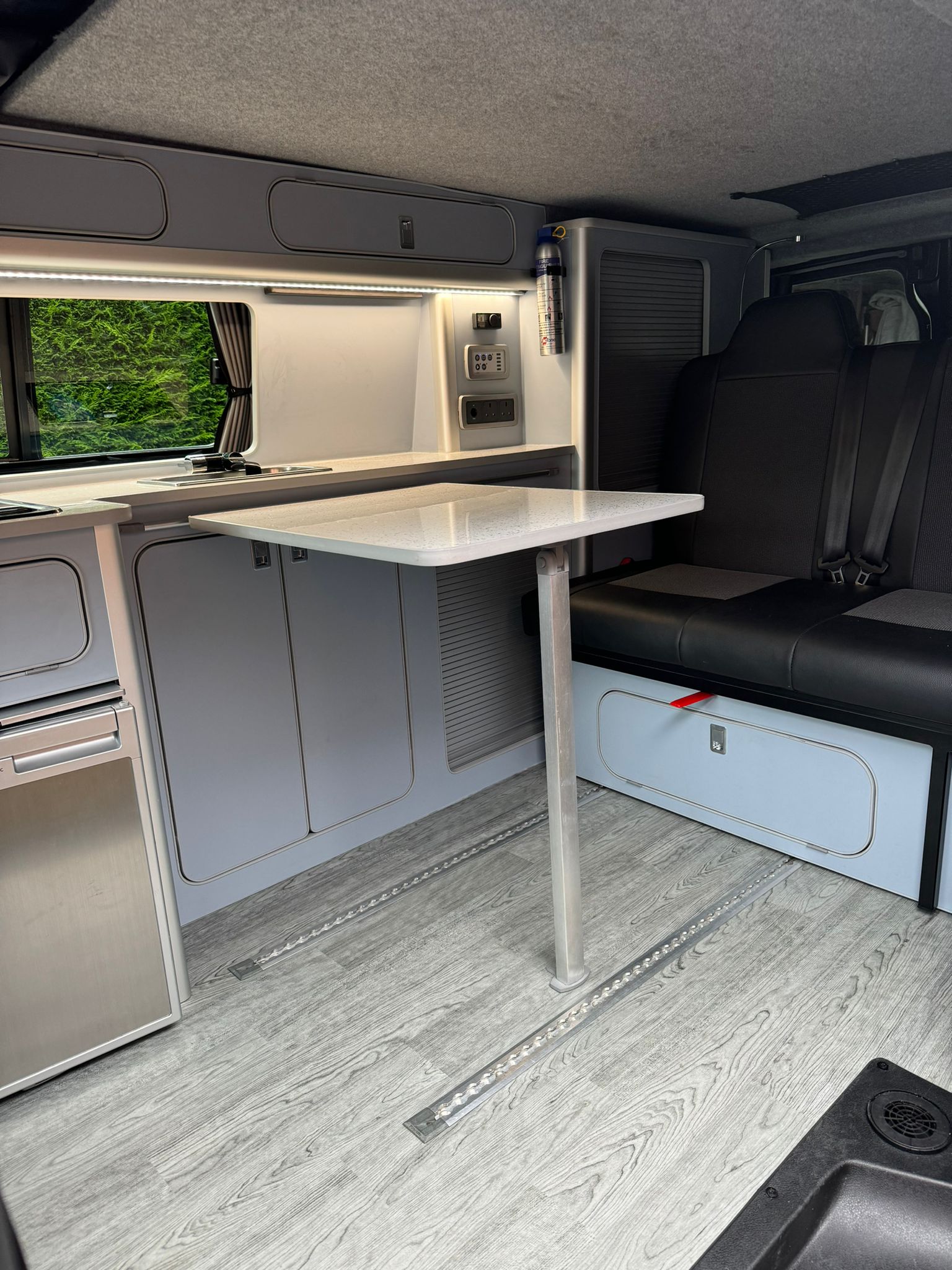 ADDED EXTRAS : 240V HOOK UP, LEISURE BATTERY, SPLIT CHARGER, 2 BURNER GAS HOB WITH GAS LOCKER ,SINK WITH 12L WATER CARRIER WITH WASTE TO OUTSIDE DRAIN PIPE, UNDER COUNTER LED LIGHTS, REMOVABLE TABLE, USB SOCKETS, 12V SOCKETS, 240V SOCKETS , EBERSPACHER DIESEL POWERED HEATING , FIAMMA F43 VAN AWNING, LED DOWNLIGHTERS AND LED UPLIGHTER IN POP TOP AREA ALLOY WHEELS , 50 L FRIDGE WITH FREEZER COMPARTMENT, POP TOP ROOF ,ROOF BED WITH MATTRESS, DRIVER AND PASSENGER SWIVEL SEATS, FRONT SEAT ARMRESTS , UNWIN SLIDING RAIL SYSTEM FOR ROCK AND ROLL BED WHICH ALLOWS REAR PASSENGERS TO BE CLOSER TO THE FRONT WHEN TRAVELLING, LEAVING A HUGE REAR STORAGE SPACE , PERFECT FOR SAFE TRAVELLING WHILE LOADED AND USING THE VAN FOR DAILY COMMUTING ETC