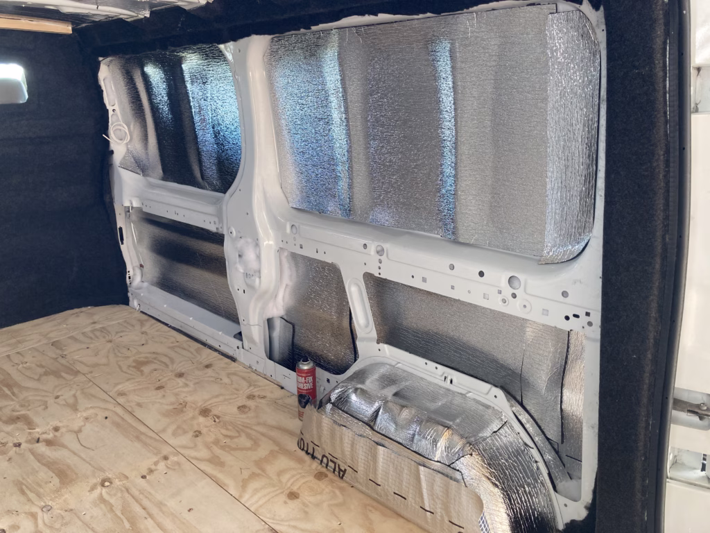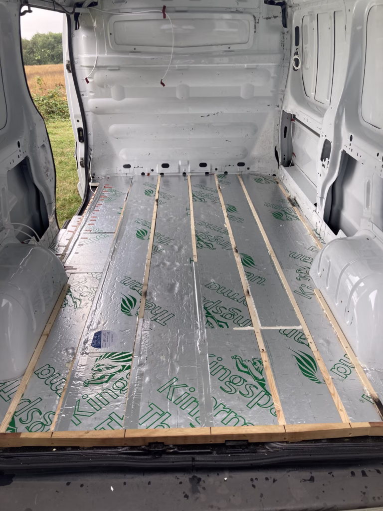 As you can see from the photos, this van is built to a decent standard, using quality materials throughout. She is extremely well insulated, three rolls of Dodo fleece were used as well as sound deadening/insulation roll, and hard to reach areas were injected with Soudal loft insulation foam, covered by vapour barrier membrane throughout. I used 25mm Kingspan on the floor and 12mm ply.