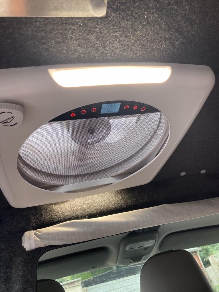 It has a decent roof light with a ten speed reversible fan which works extremely well, as well as an additional mushroom vent.