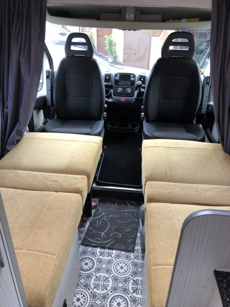 2 off front swivel seats and 2 off single rear seats that convert to make 2 off adult single beds