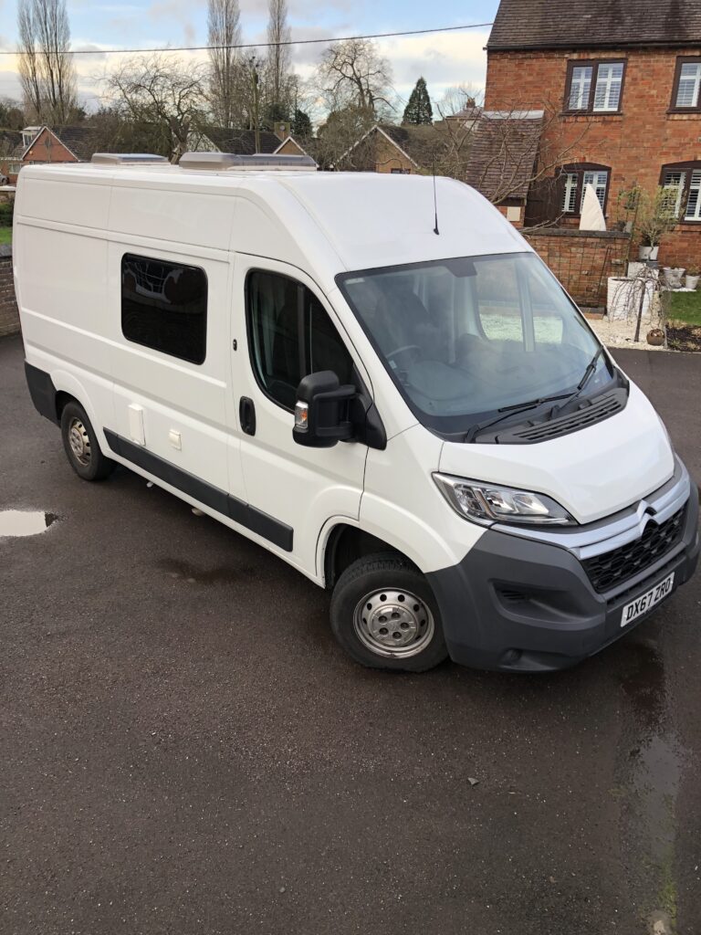 Purchased van in 2021 and converted professionally by GB Camper Conversions in Tamworth late 2021 / early 2022 (GB Camper Van you tube video detailing conversion available to view titled ‘Citroen Relay MWB off Grid Camper Conversion’)