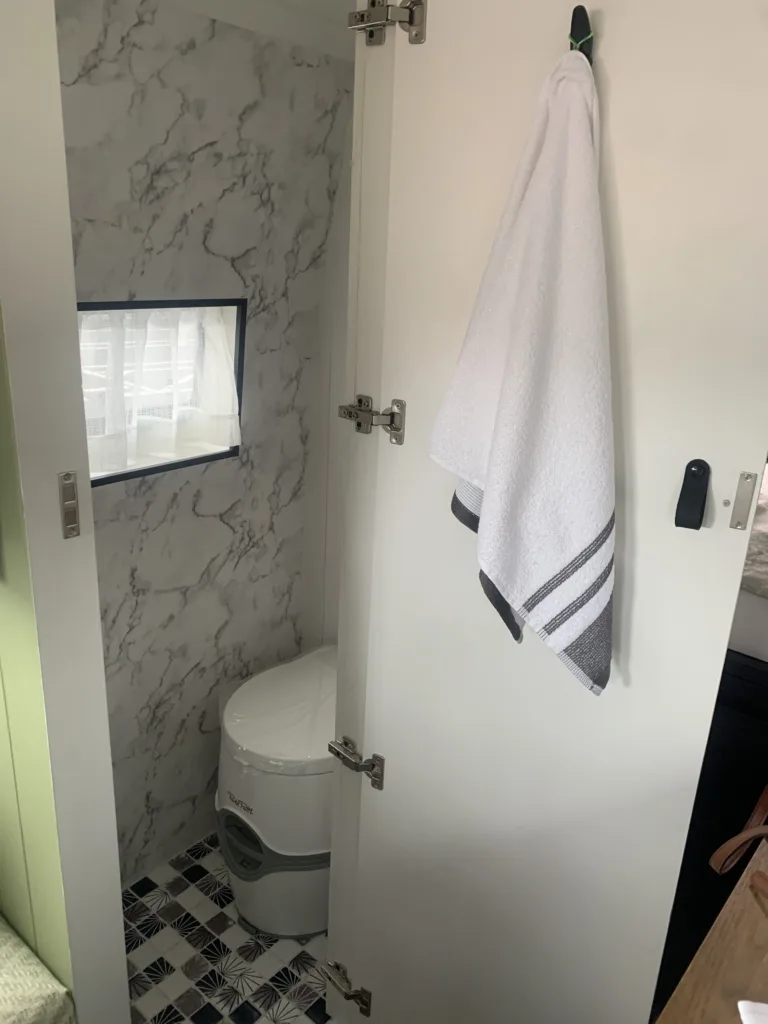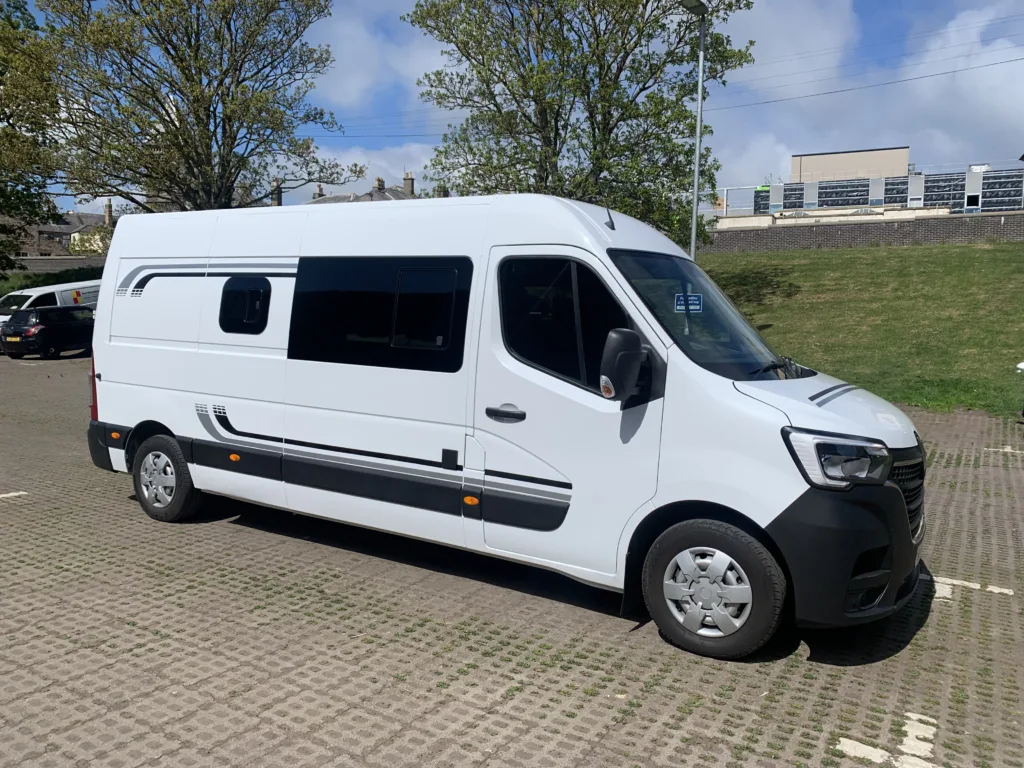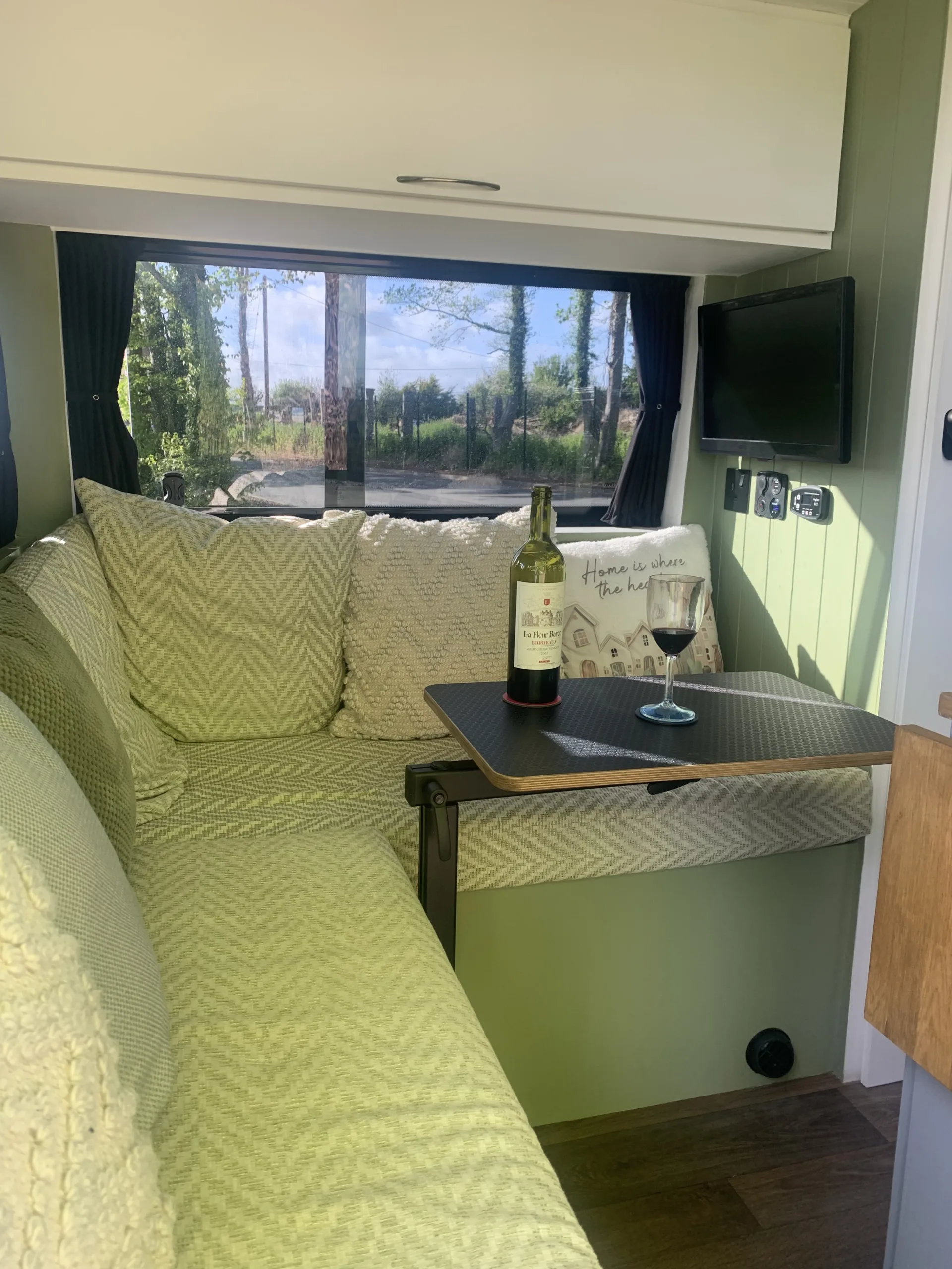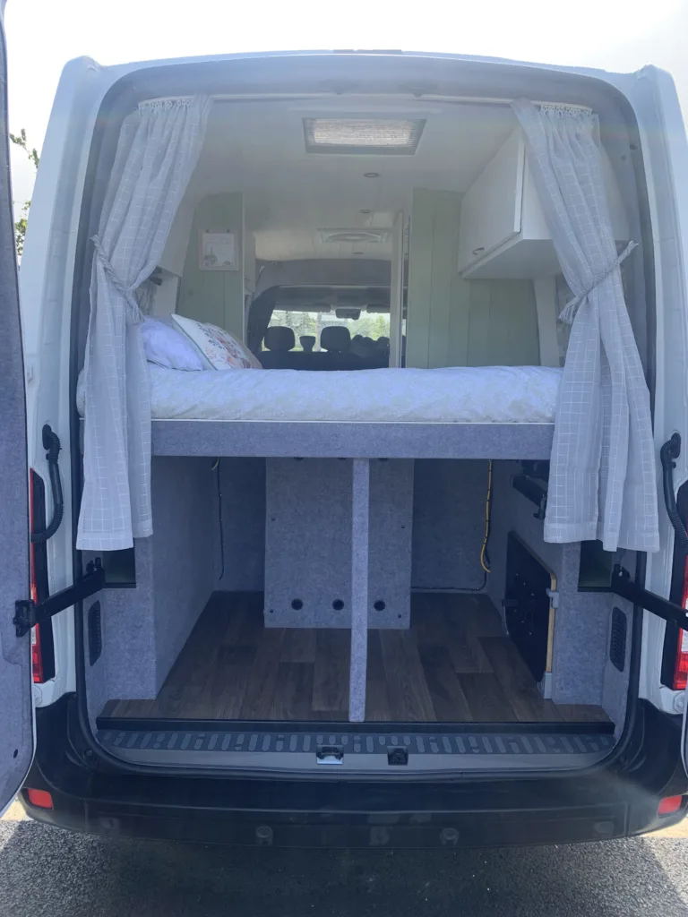 Fixed bed 6ft2 x4ft.Separate toilet with Thetford 565p portable loo.12v 65l compressor fridge,Thetford gas oven and hob,Thetford Argent sink with Reich tap.Diesel heater,240v hook up,12v system,battery to battery smart charger,240 v charger,12 v tv,3 seats in front ample storage in overhead cupboards and under l shaped seating area which can also convert to small bed 6ft2 x3ft6 ,detachable table.Solid wood worktops with flip up extra leaf.Touch sensitive lights both down lights and spots.Mosaic tiled splashback. Various sockets and usb connections.Full length mirror.Memory foam mattress.Curtains on windows and in bed area.Large under bed boot area.