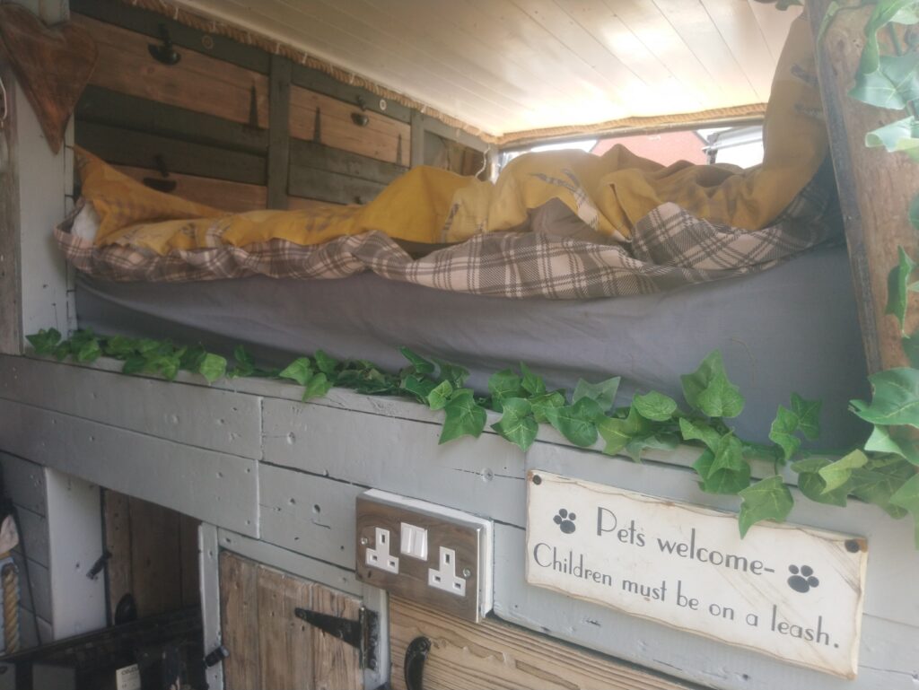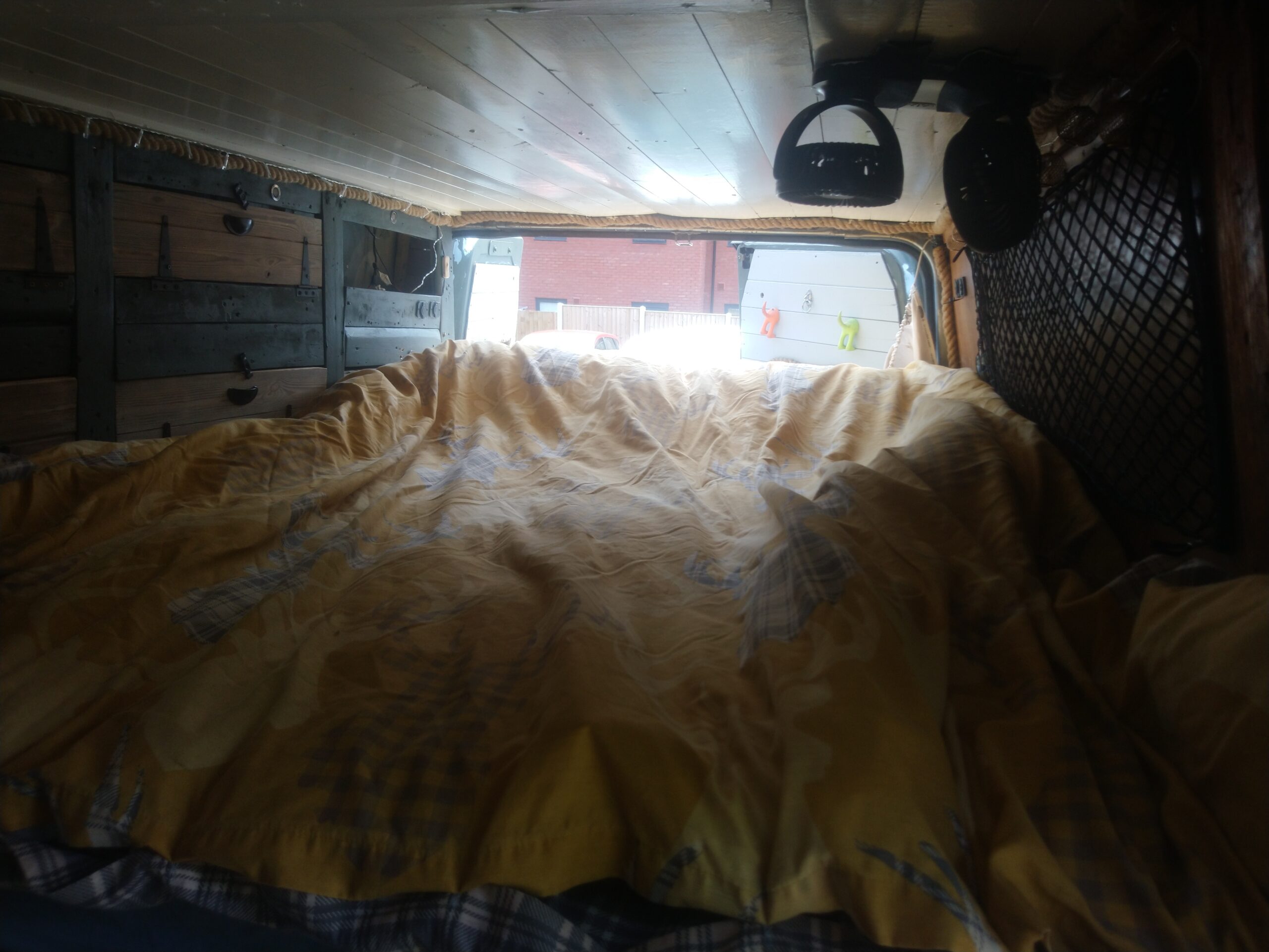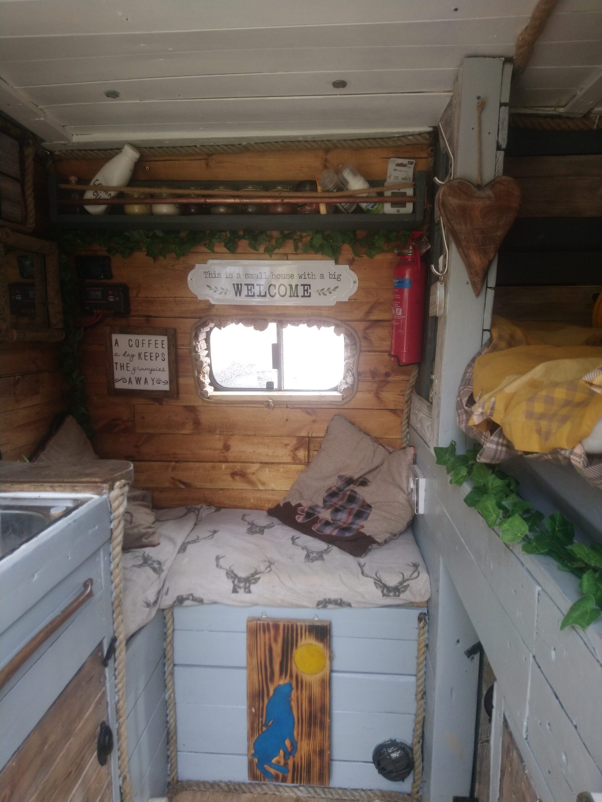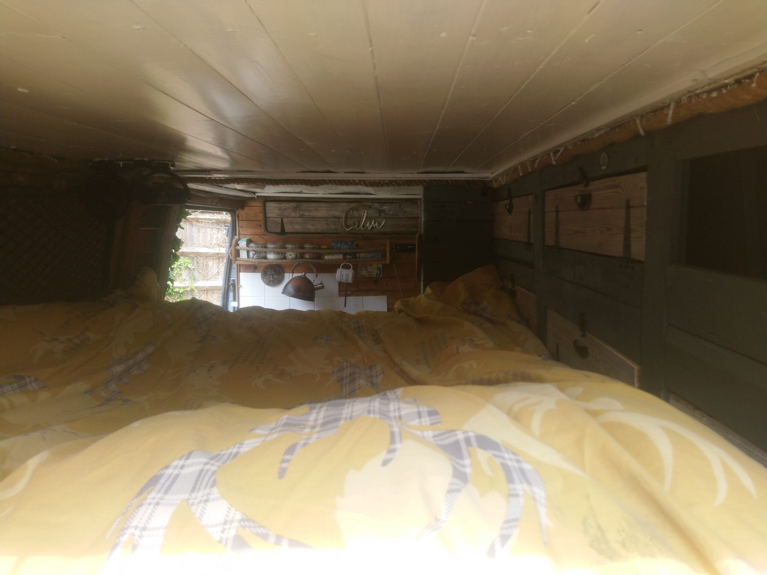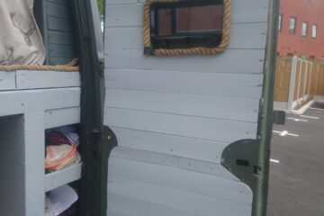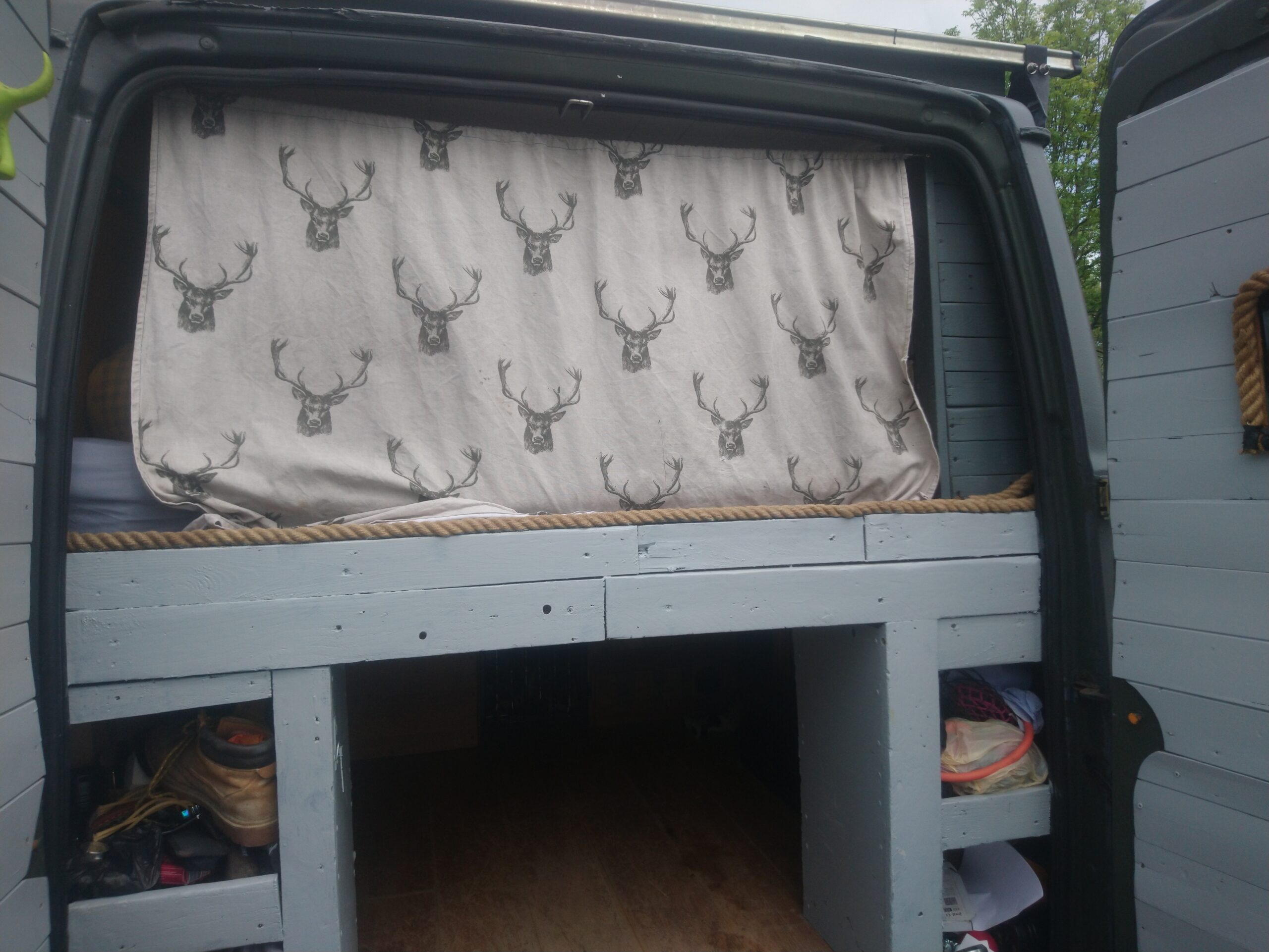 Rustic self built conversion. Everything is included with van from bedding, awning, crockery, gas bottle, toilet, 60 ltr compressor fridge. All you need is fuel and your away. Roller painted with battleship grey paint, bf Goodrich all terrain tyres. Conversion has king sized fixed bed with under bed storage or dog bed area with gates at both ends. Lots of storage, 12 v usbs, led lights, extractor fan, 4 opening windows, fully insulated, diesel heater, twin 110ah leisure batteries, 200 Watts off solar, split charge relay, sink, CD radio, 2 burner hob with grill, 240 hook up, 2 double sockets, removable table, shelving, mirror 50 ltrs water