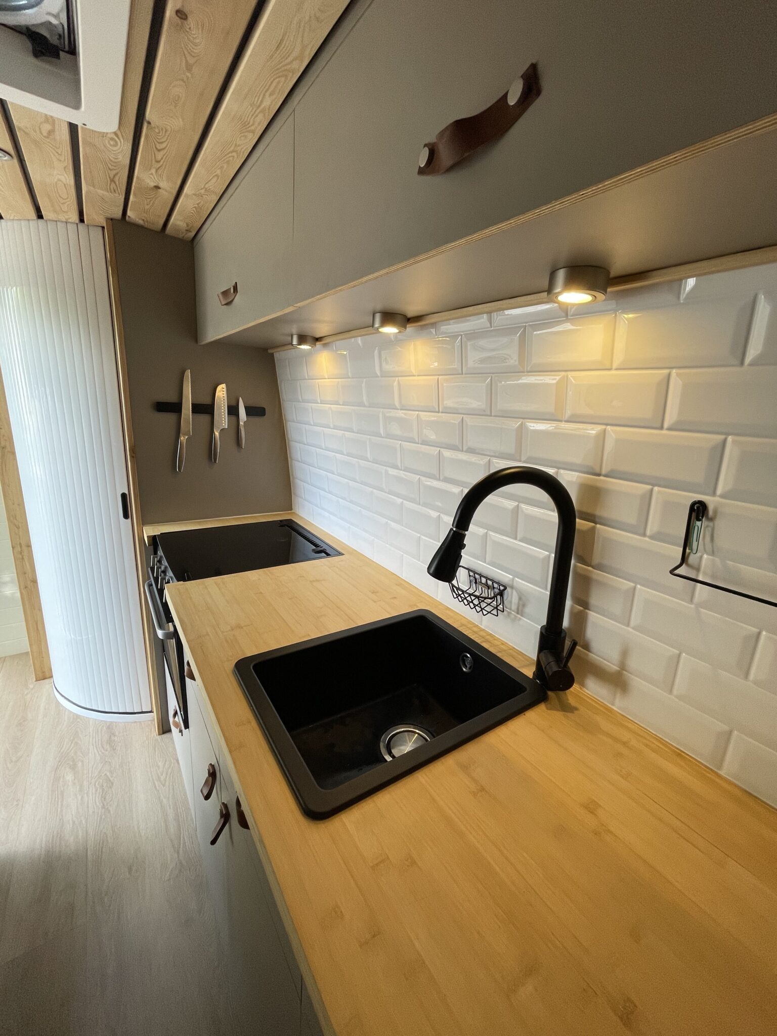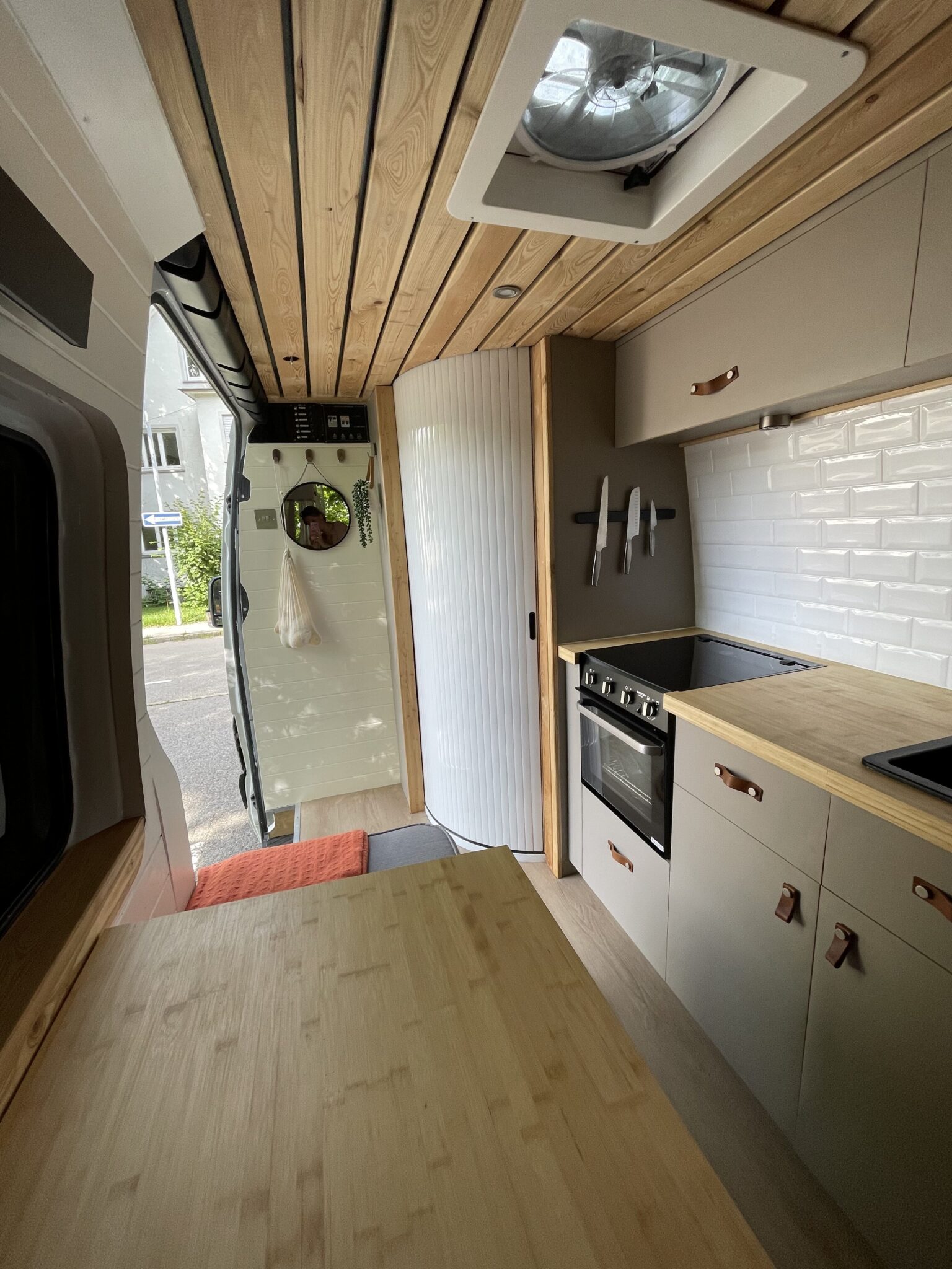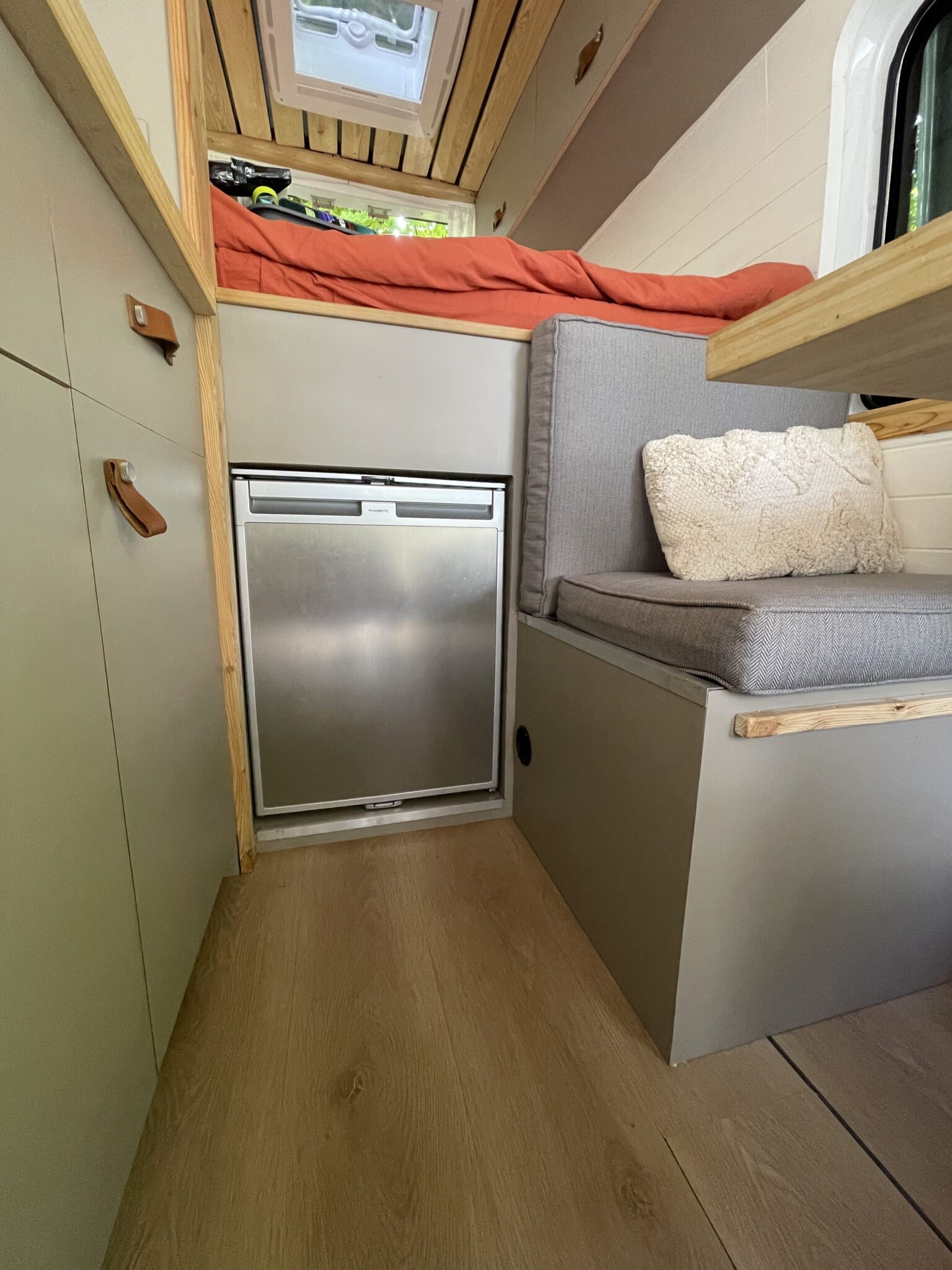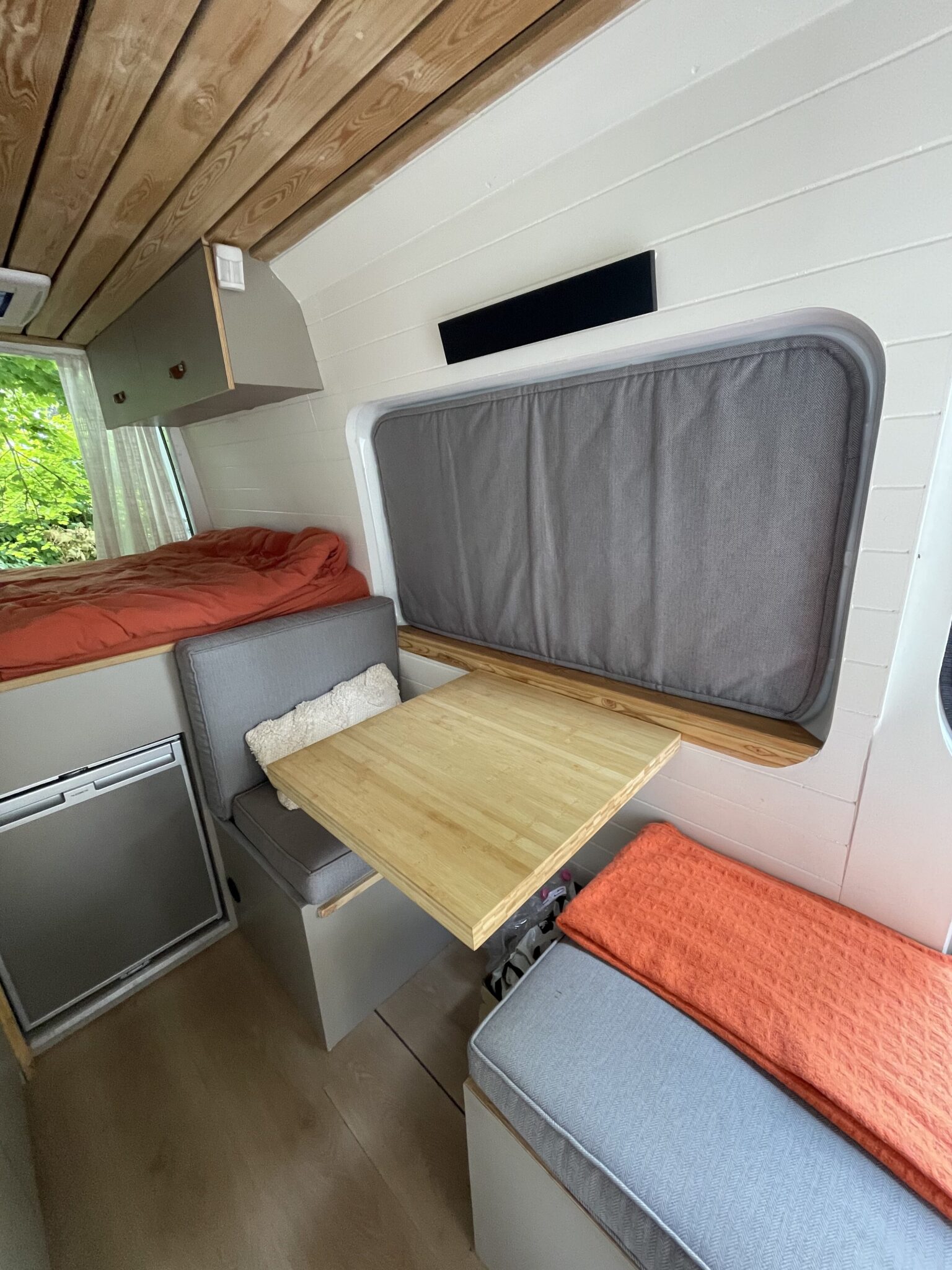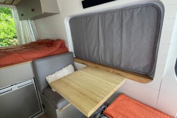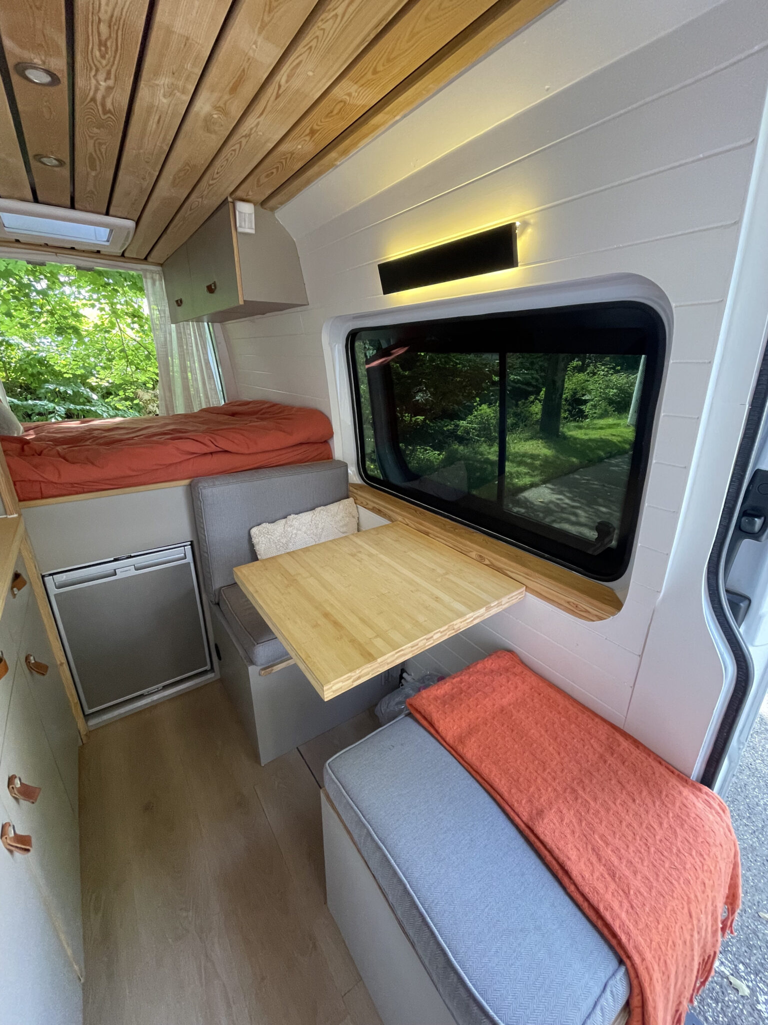 This van was converted for me to use and travel and the quality of the conversion reflects this. Unlike many conversions, nothing was scrimped or saved when building, all conversion elements were either built or purchased brand new, including all electrics, water systems, windows and awnings. Sadie is an offgrid, luxury campervan which can be traveled in for long periods of time but also for more local weekend trips. She truly is a luxurious van to travel in with a large shower, plenty of storage, oven with three hobs, 4m Fiamma awning, inbuilt fibre optic star lights above the bed and a spacious dinette.
