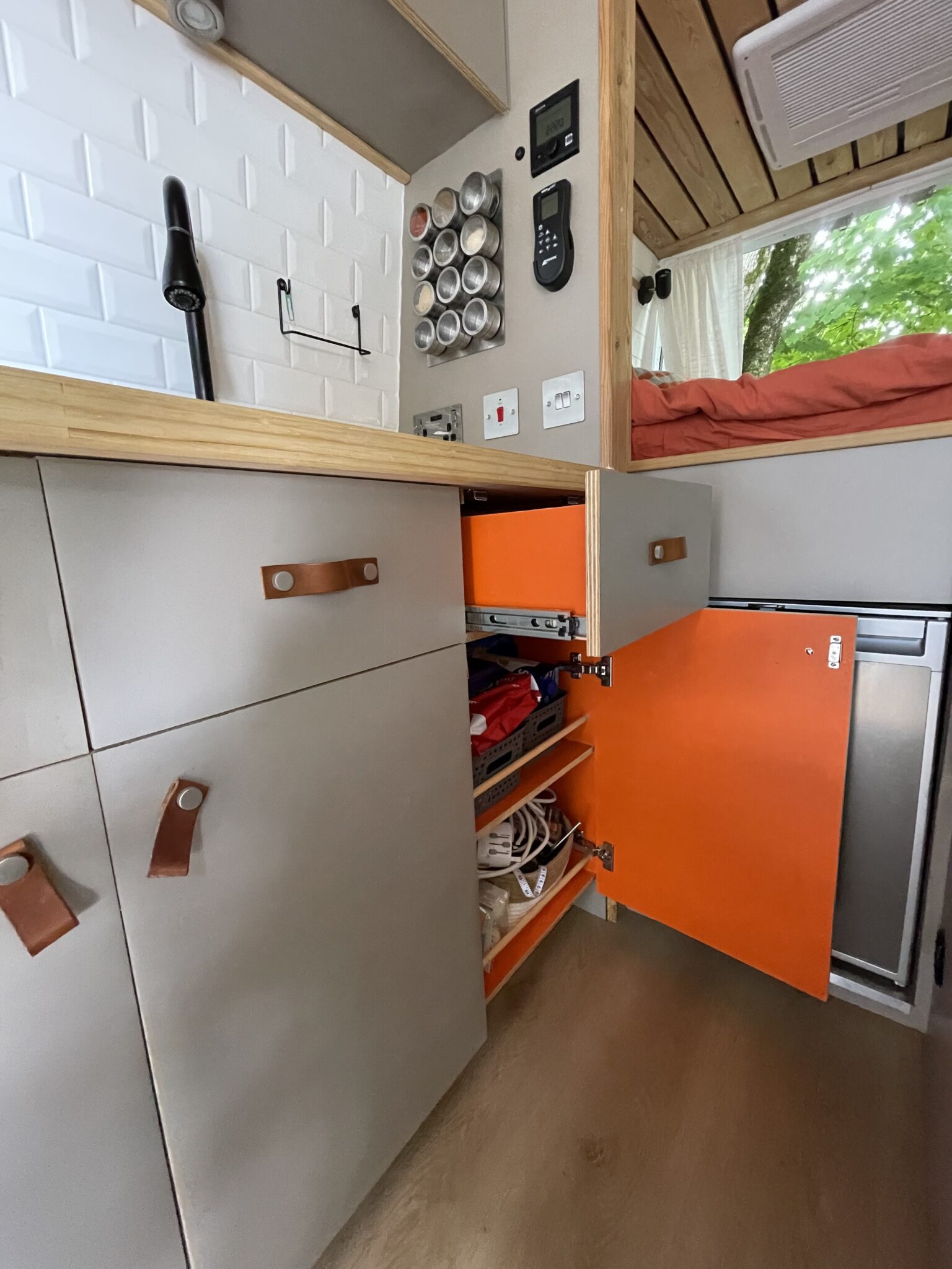 Orange interior to all lockers/cupboards