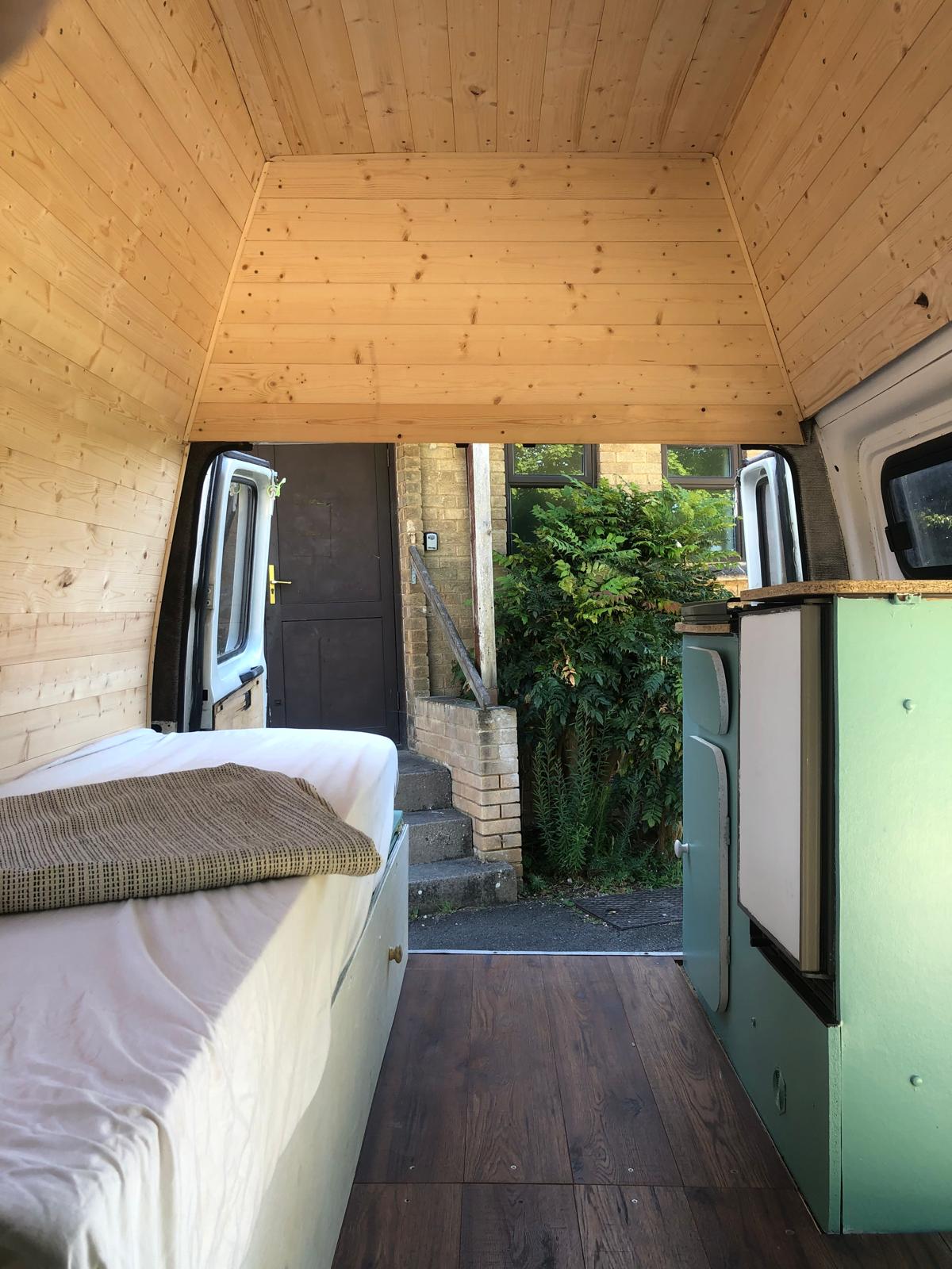 I took out all of the old, ugly furniture and cupboards (and the bad that was too small), and re-built myself. I used t&g panelling on the walls, and made a sofa/bed. I put a hard wooden floor in. I have not touched (or even used) the hob, fridge, battery, electrics, etc. However, I was assured they all work well by the people I bought it off.