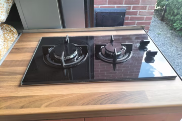 *Two-hob gas burner with gas locker, and one partial + one full Camping Gaz canister