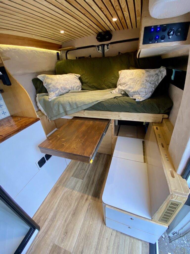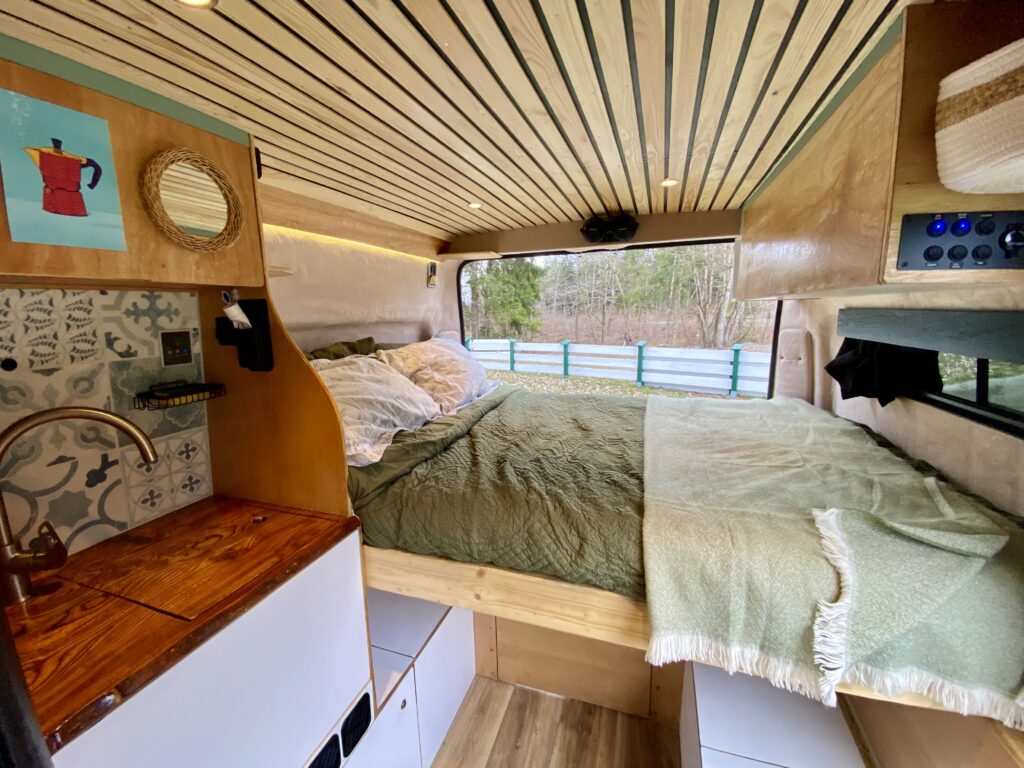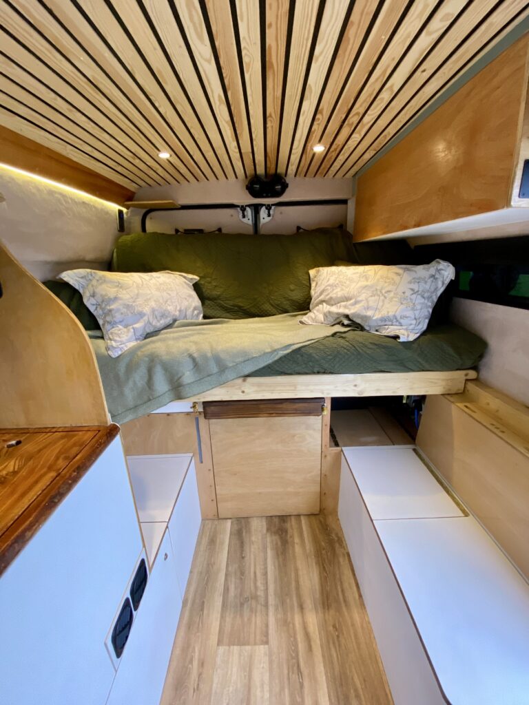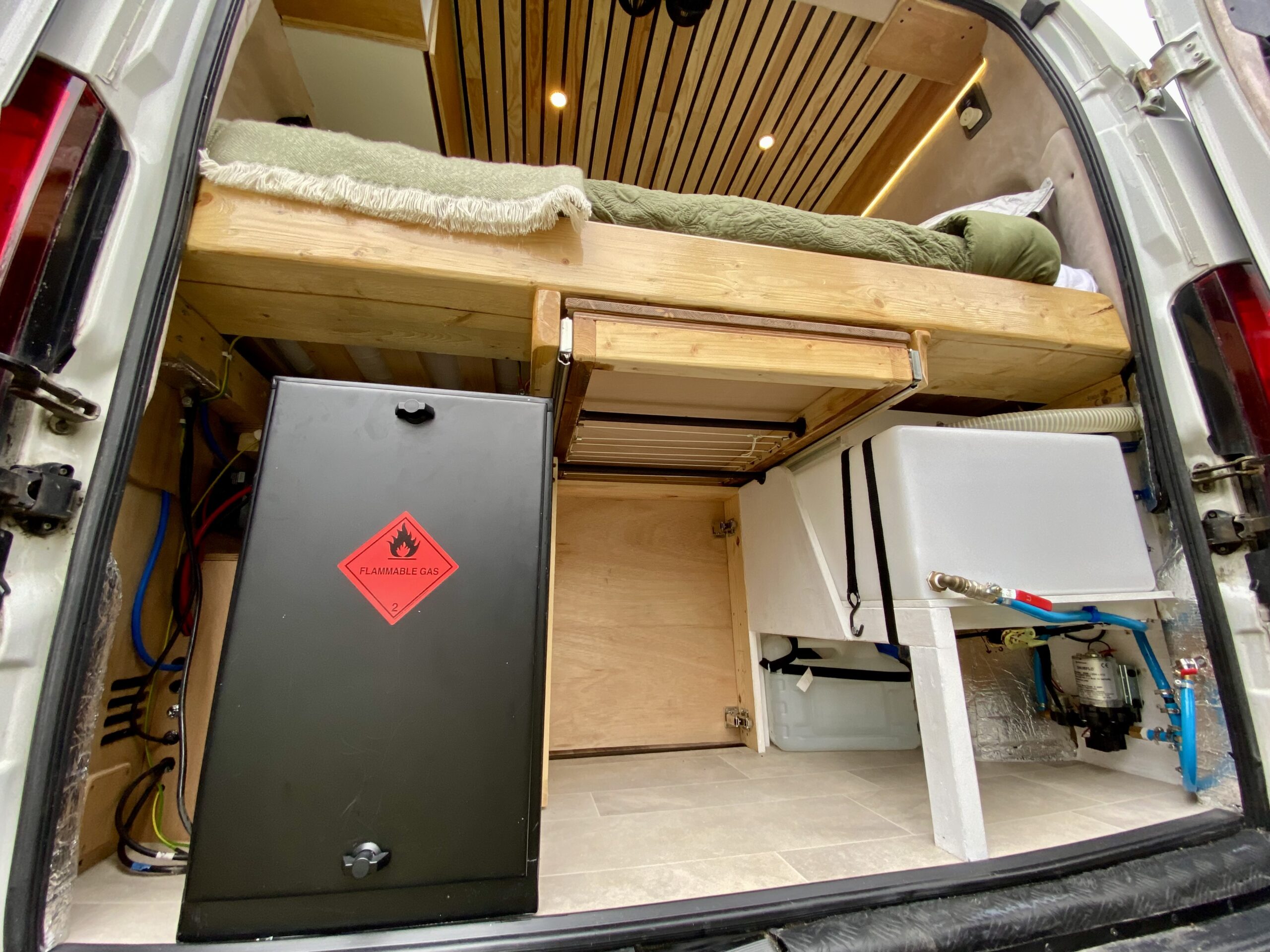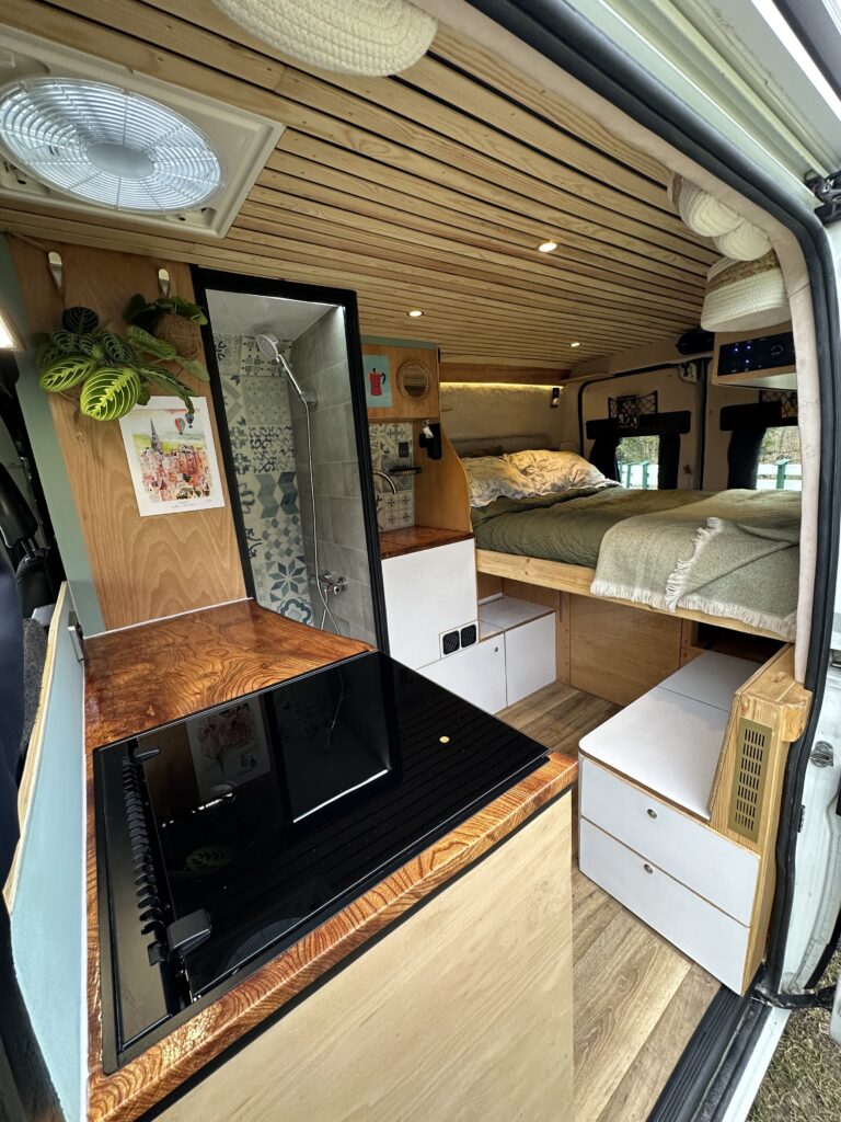The camper has been designed and built for a person who’s 6’3, so sufficient headroom/clearance and bed length has been carefully maximised throughout.