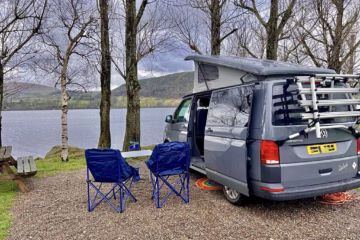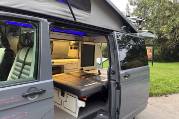 This is Shelagh! Our beautiful 2020 Volkswagen campervan professionally converted by Caledonian Campers.