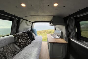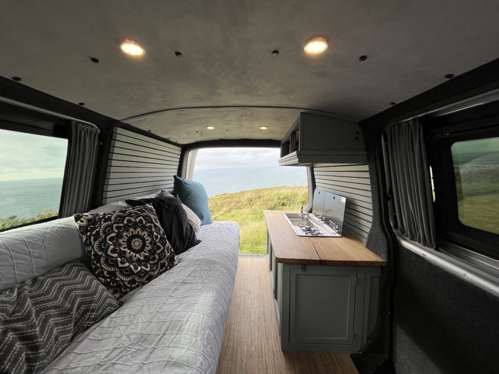 Embark on unforgettable adventures with the ease of a pullout sofa bed, ensuring a restful night’s sleep under the stars. Whether you’re exploring remote mountains or relaxing by the beach, this campervan effortlessly transforms into your cozy home away from home.