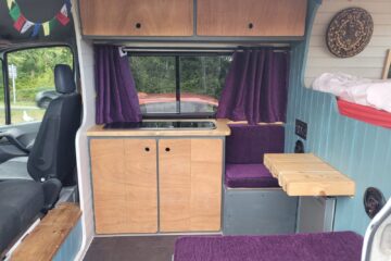 – Original custom design throughout full van layout. Designed to separate the bed area into a cabin (see photos)